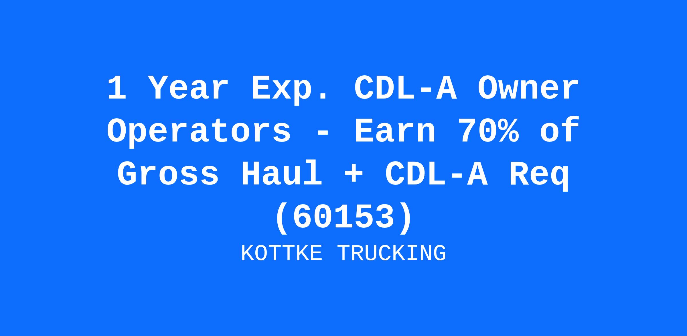 1 Year Exp. CDL-A Owner Operators - Earn 70% of Gross Haul + CDL-A Req (60153)