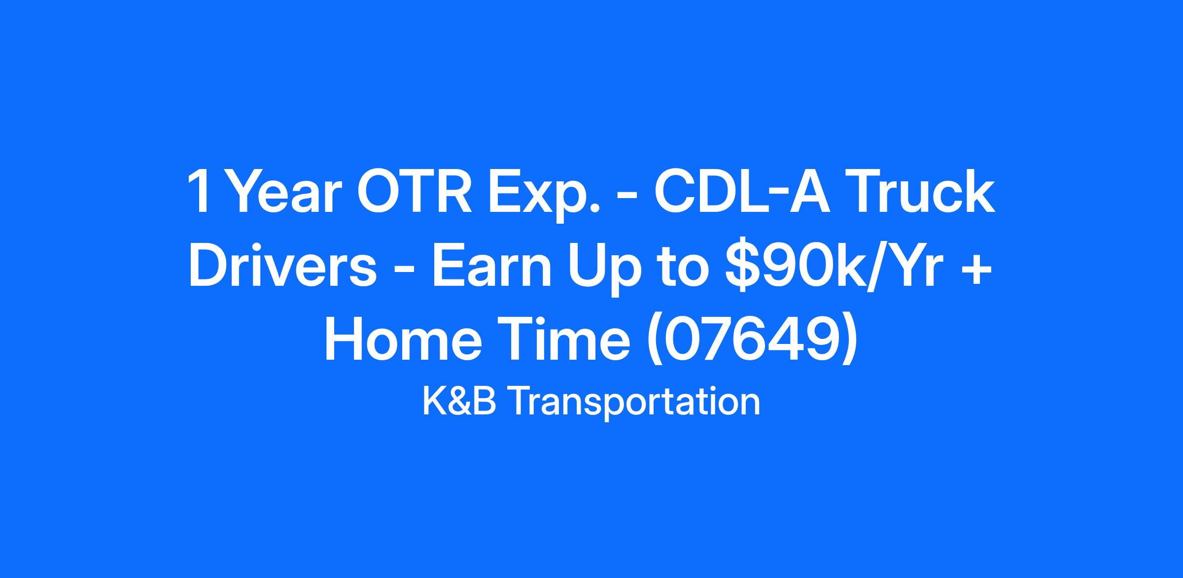 1 Year OTR Exp. - CDL-A Truck Drivers - Earn Up to $90k/Yr + Home Time (07649)