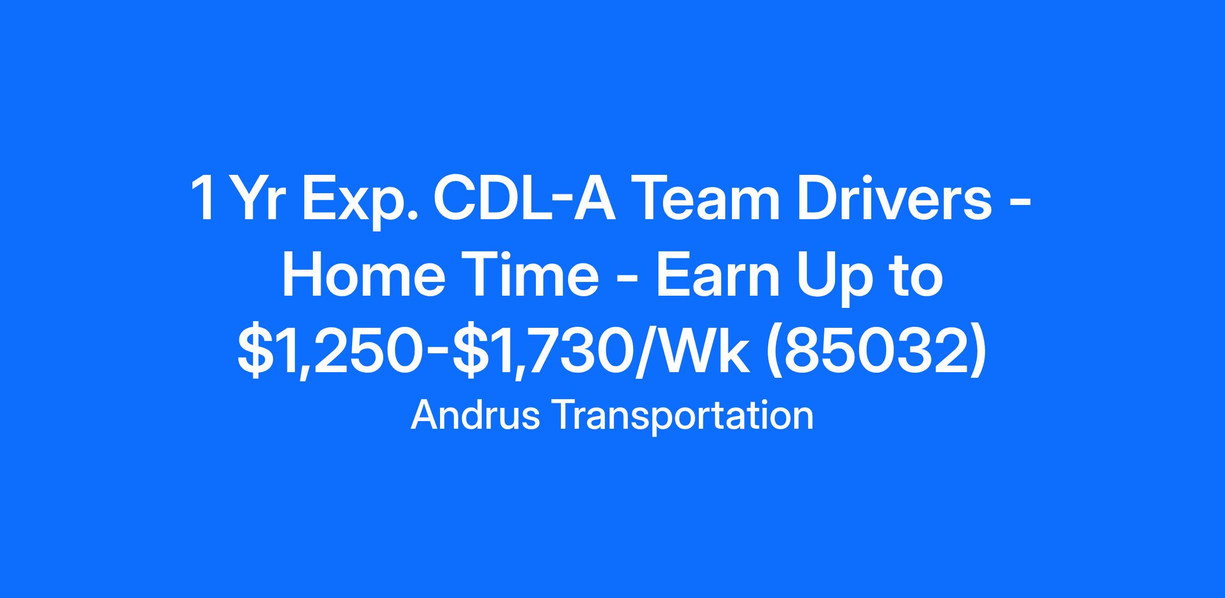 1 Yr Exp. CDL-A Team Drivers - Home Time - Earn Up to $1,250-$1,730/Wk (85032)