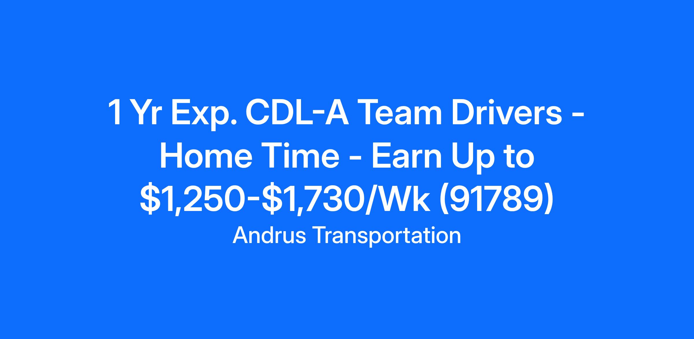 1 Yr Exp. CDL-A Team Drivers - Home Time - Earn Up to $1,250-$1,730/Wk (91789)