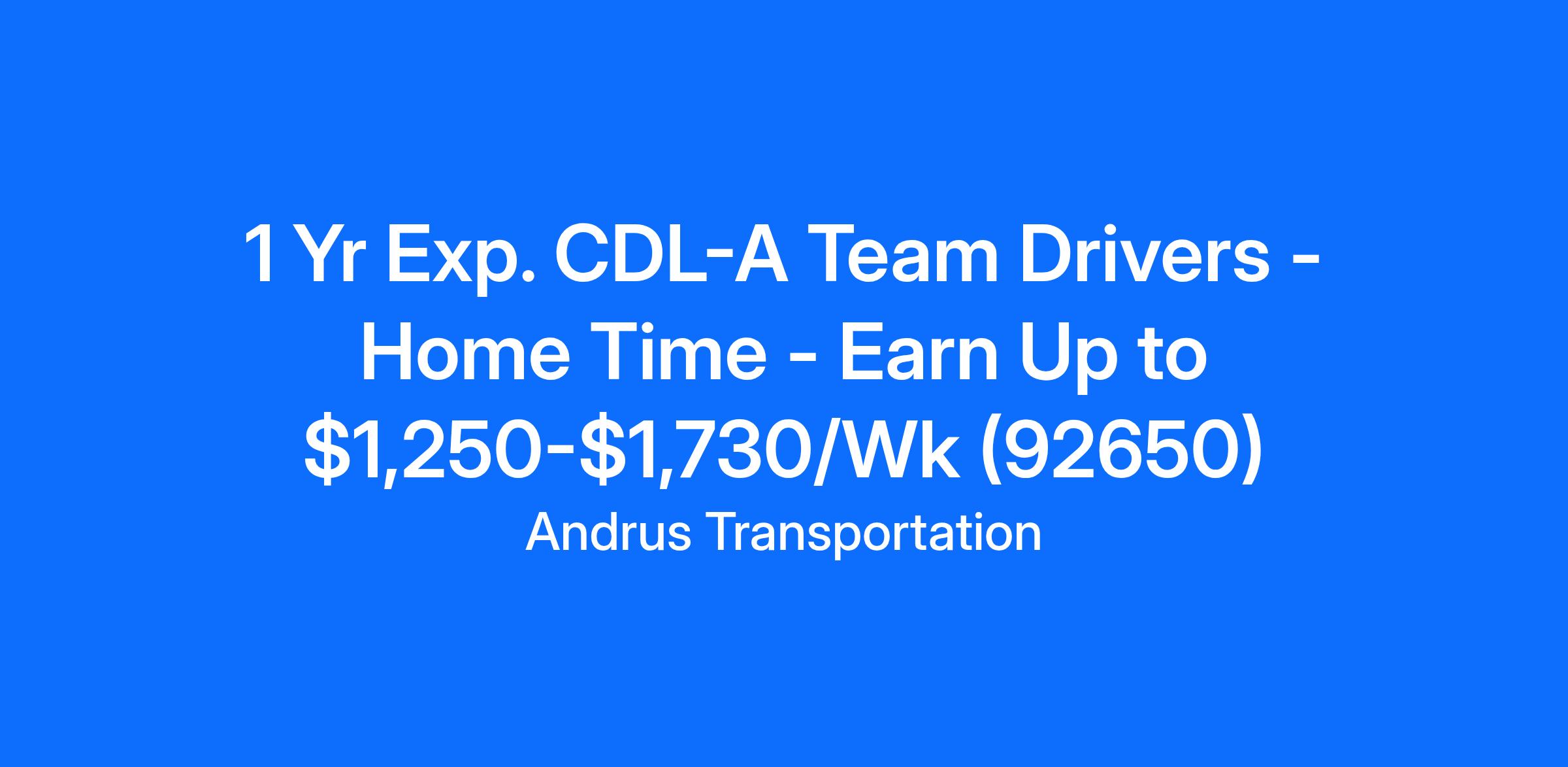1 Yr Exp. CDL-A Team Drivers - Home Time - Earn Up to $1,250-$1,730/Wk (92650)