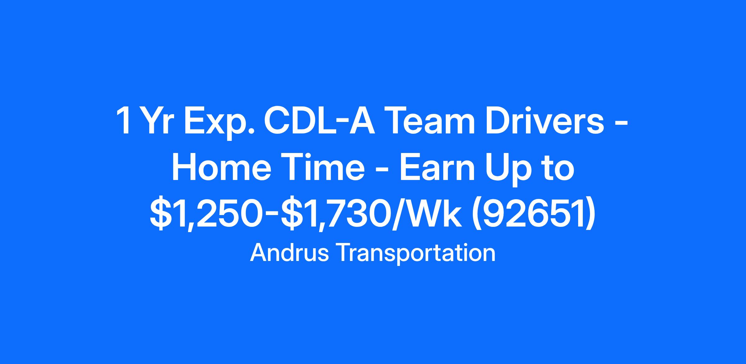 1 Yr Exp. CDL-A Team Drivers - Home Time - Earn Up to $1,250-$1,730/Wk (92651)
