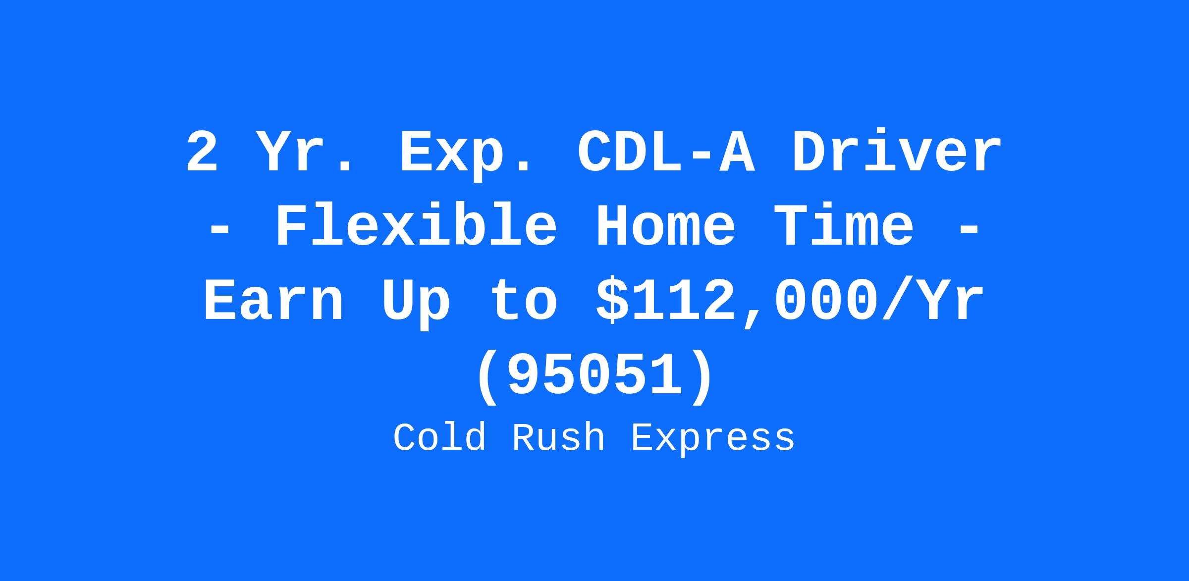 2 Yr. Exp. CDL-A Driver - Flexible Home Time - Earn Up to $112,000/Yr (95051)