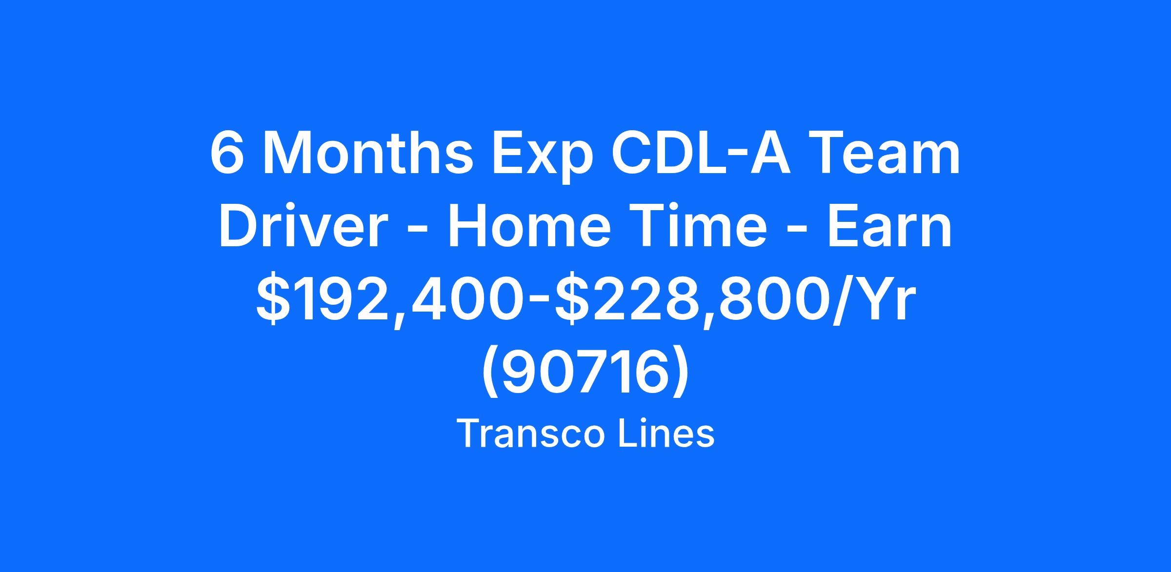6 Months Exp CDL-A Team Driver - Home Time - Earn $192,400-$228,800/Yr (90716)
