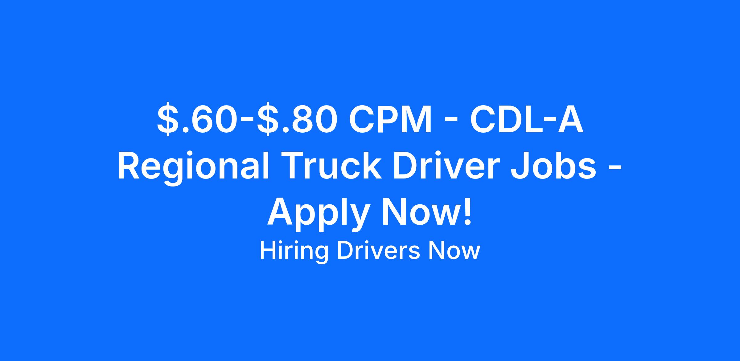 Hiring Regional CDL-A Truck Drivers! ($.60-$.80 CPM)