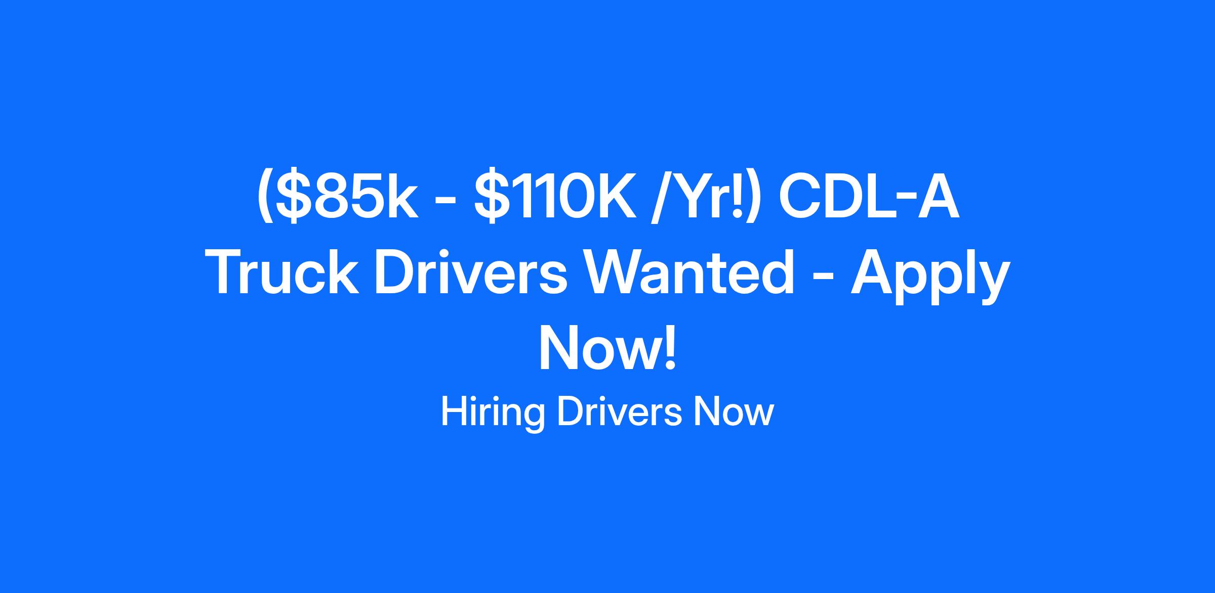 ($85k - $110K /Yr!) CDL-A Truck Drivers Wanted - Apply Now!