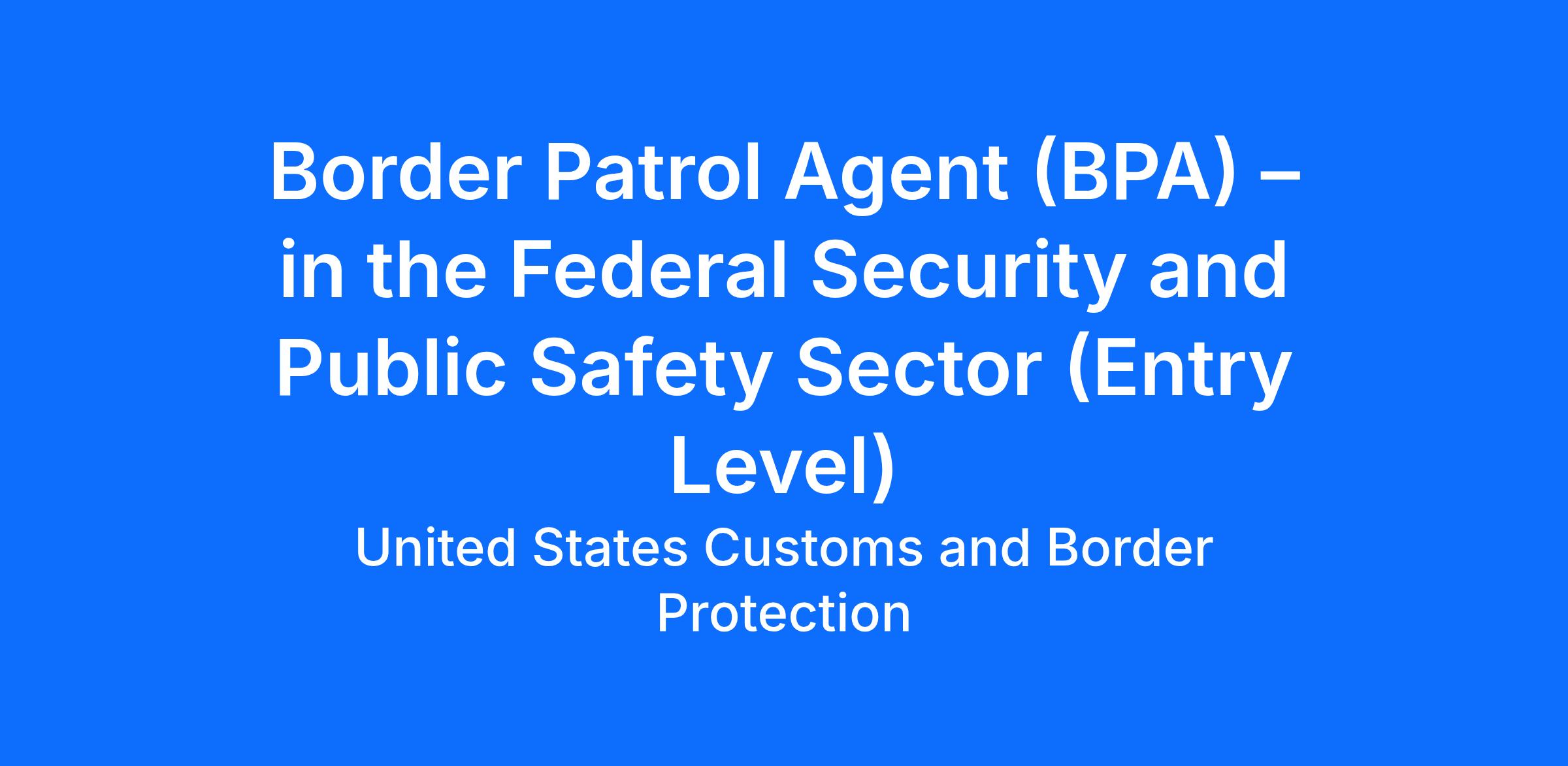 Border Patrol Agent (BPA) – in the Federal Security and Public Safety Sector (Entry Level)