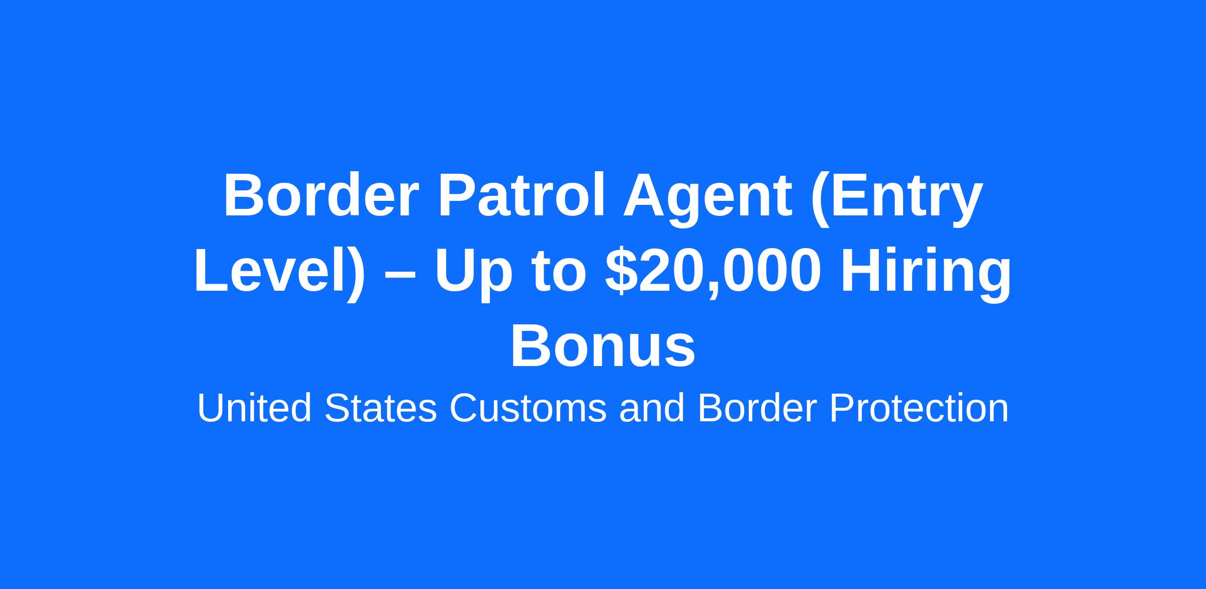 Border Patrol Agent (Entry Level) – Up to $20,000 Hiring Bonus