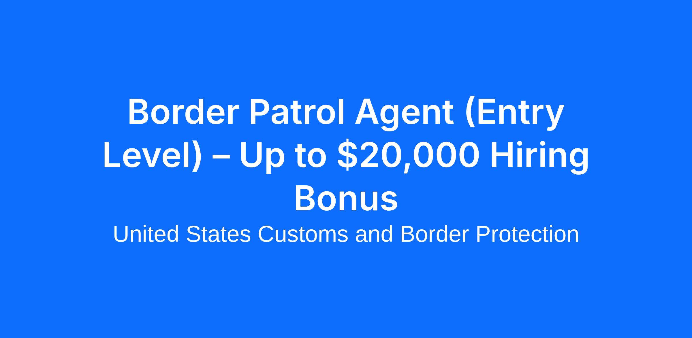 Border Patrol Agent (Entry Level) – Up to $20,000 Hiring Bonus