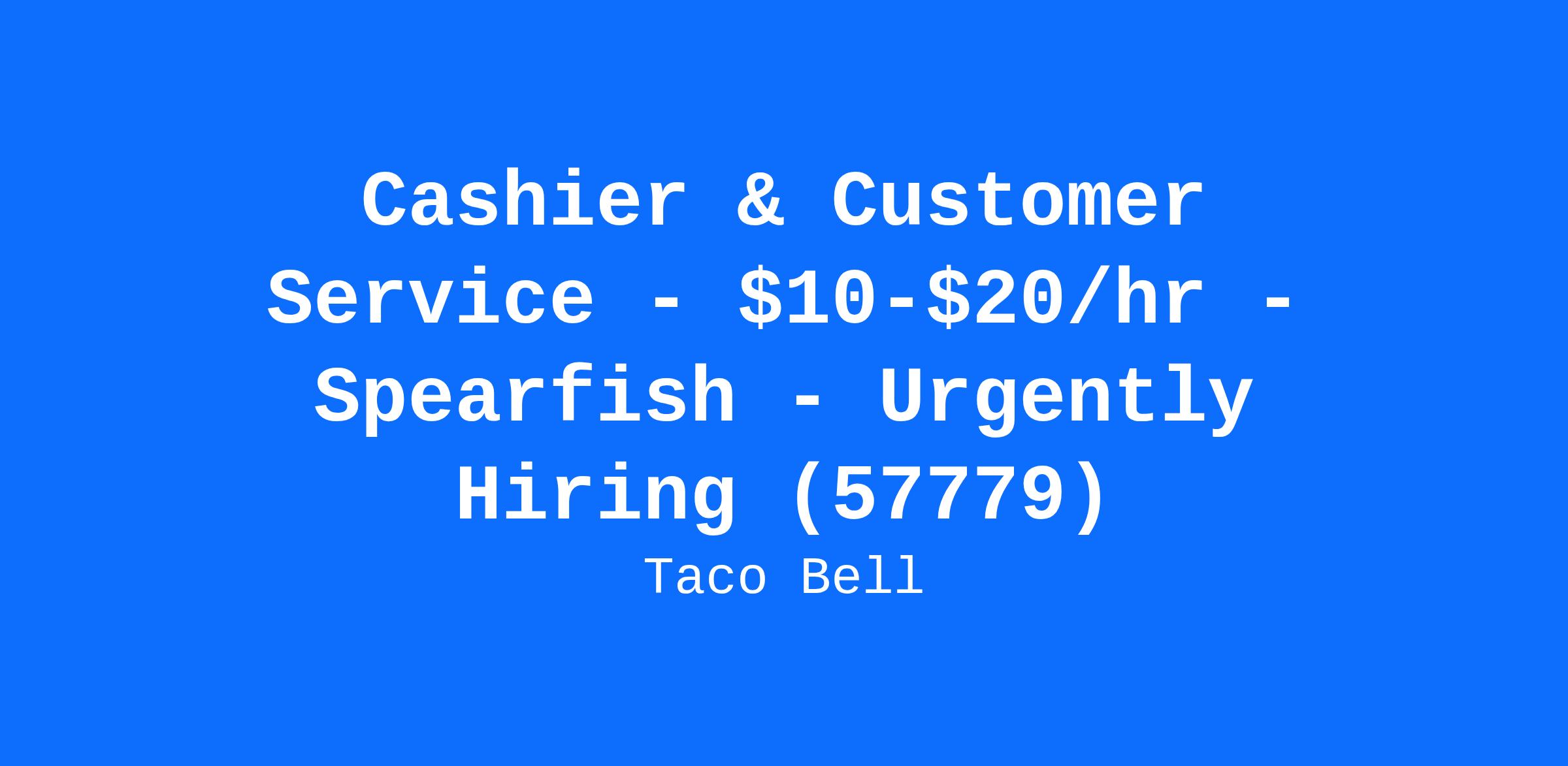 Taco Bell - Spearfish is looking for a full time or part time Cashier and Customer Service team member to join our location in Spearfish, SD. The Cashier and Customer Service position will be a blend of hospitality and operations. You will use cash registers, POS terminals, electronic scanners, and other related equipment to conduct monetary transactions with customers all while making sure our guests' needs are taken care of. At times you'll be responsible for making sure the front of the house is neat and orderly, restocking items, and answering the phone. The ideal candidate is dependable and reliable with excellent customer service skills, top-notch accuracy, and displays exceptional customer service to ensure the guests will return.