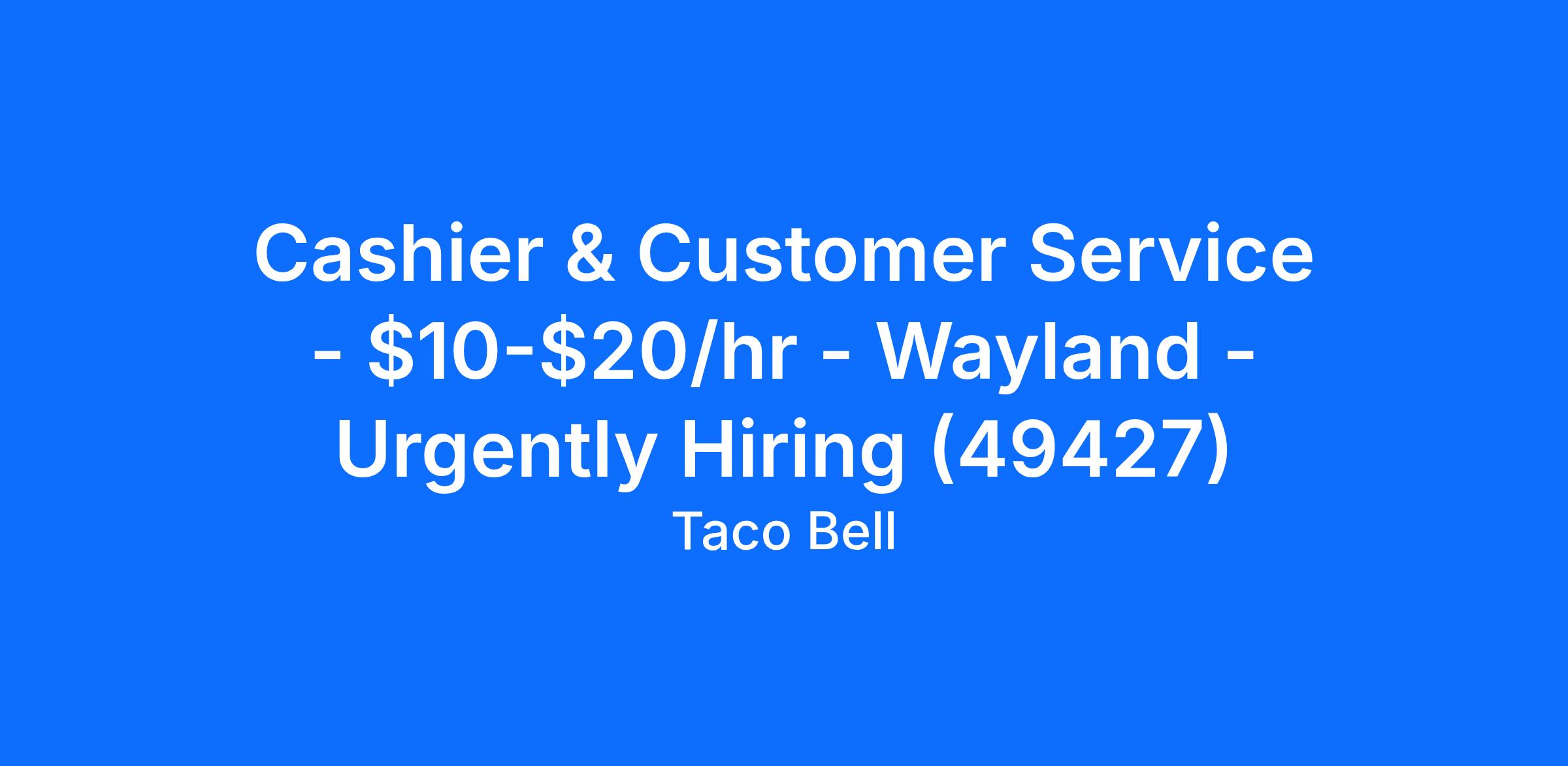 Taco Bell - Wayland is looking for a full time or part time Cashier and Customer Service team member to join our location in Wayland, MI. The Cashier and Customer Service position will be a blend of hospitality and operations. You will use cash registers, POS terminals, electronic scanners, and other related equipment to conduct monetary transactions with customers all while making sure our guests' needs are taken care of. At times you'll be responsible for making sure the front of the house is neat and orderly, restocking items, and answering the phone. The ideal candidate is dependable and reliable with excellent customer service skills, top-notch accuracy, and displays exceptional customer service to ensure the guests will return.