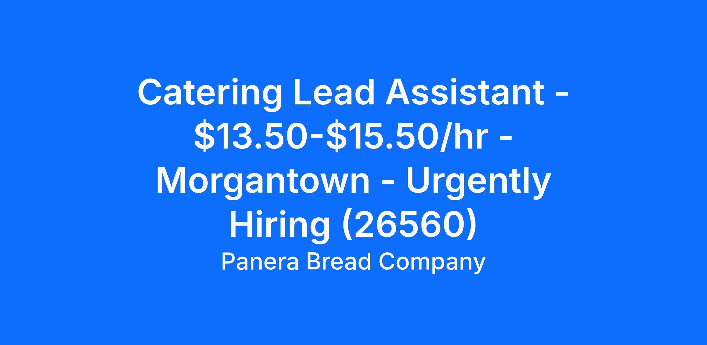 Catering Lead Assistant - $13.50-$15.50/hr - Morgantown - Urgently Hiring (26560)