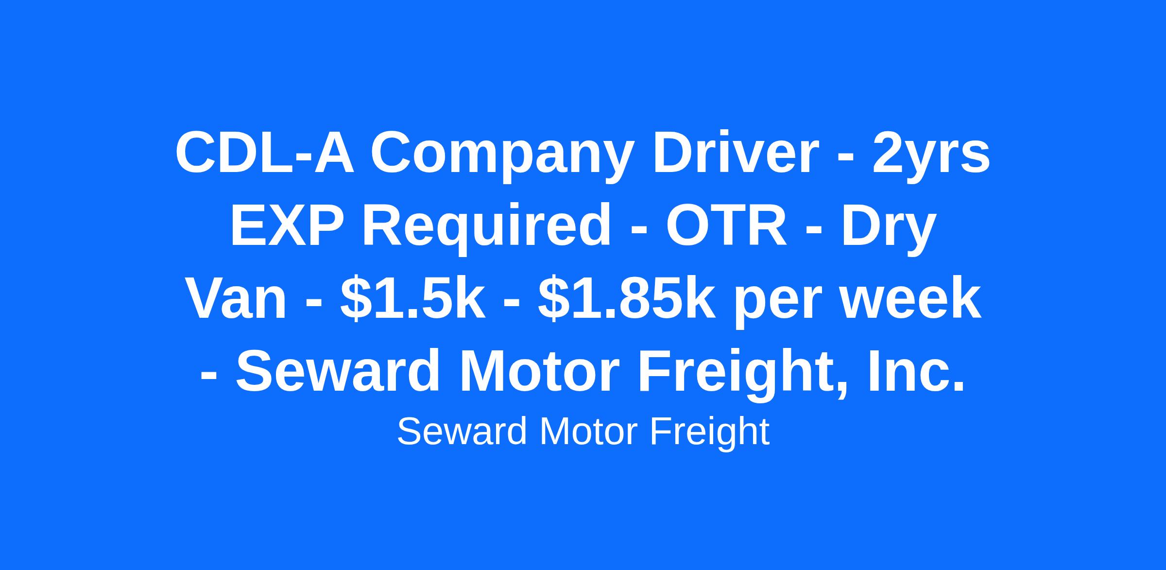 CDL-A Company Driver - 2yrs EXP Required - OTR - Dry Van - $1.5k - $1.85k per week - Seward Motor Freight, Inc.