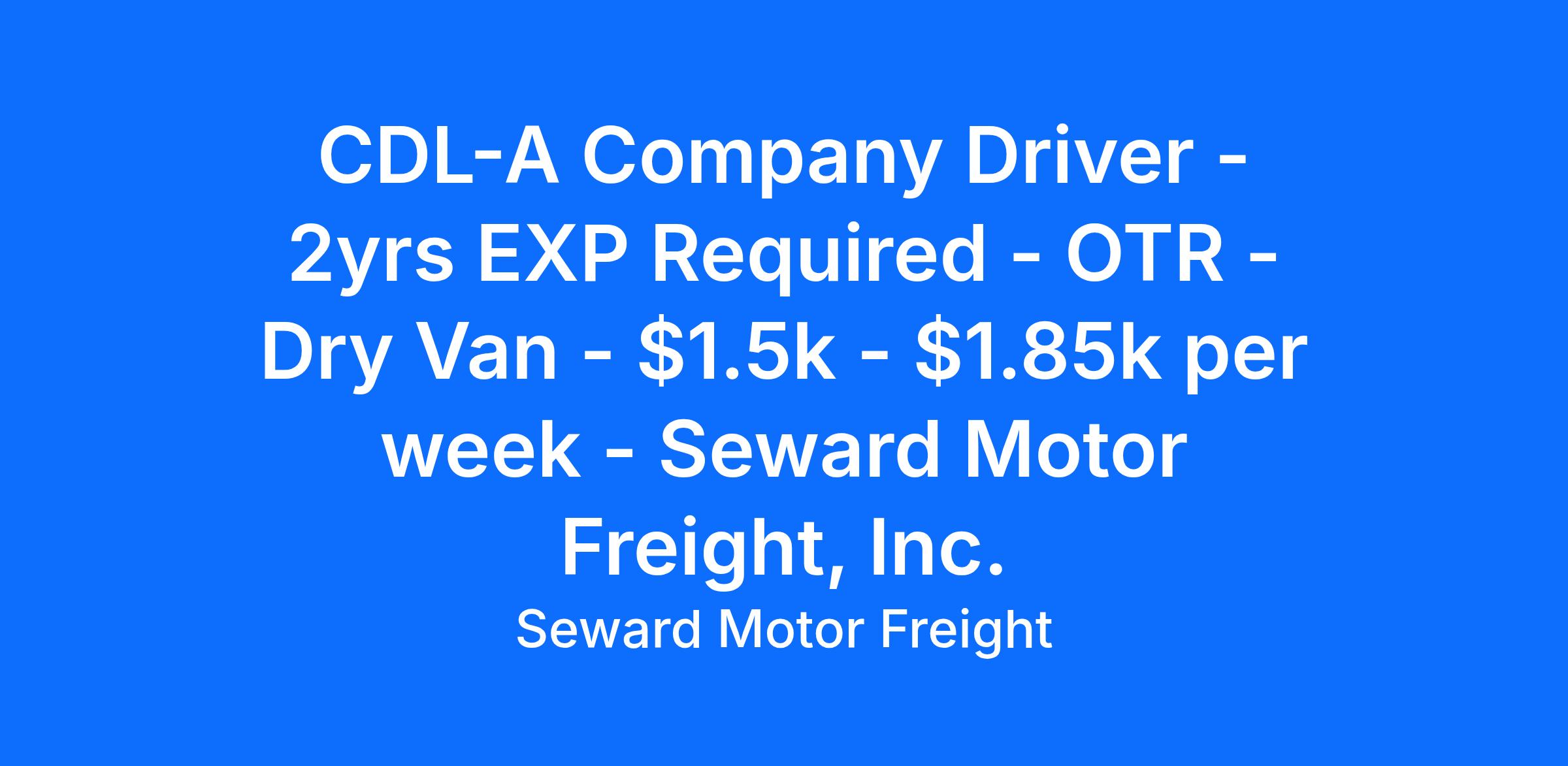 CDL-A Company Driver - 2yrs EXP Required - OTR - Dry Van - $1.5k - $1.85k per week - Seward Motor Freight, Inc.