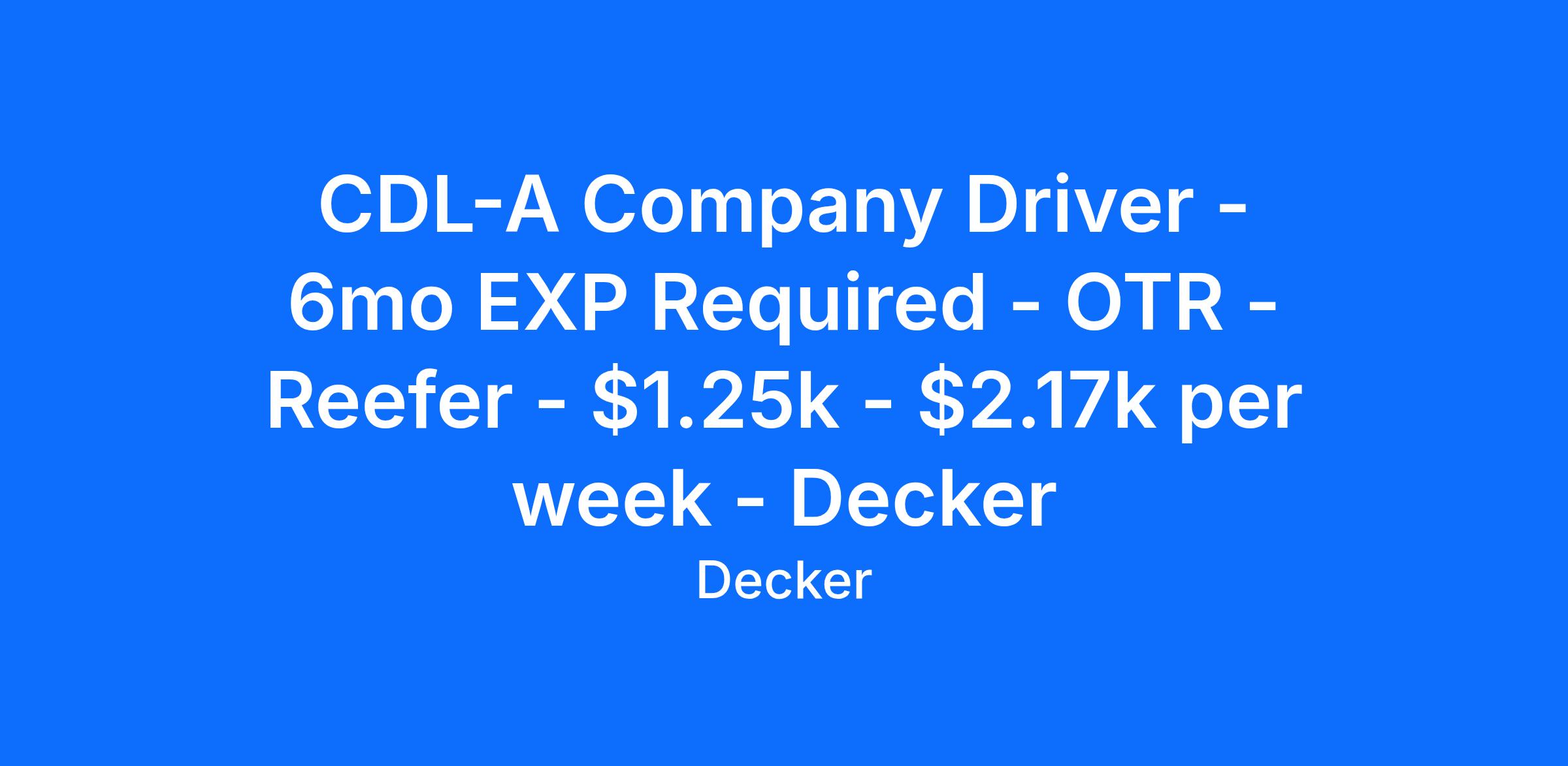 CDL A Regional Truck Driver – Weekly Pay: $1,150–$2,170We're hiring experienced CDL A