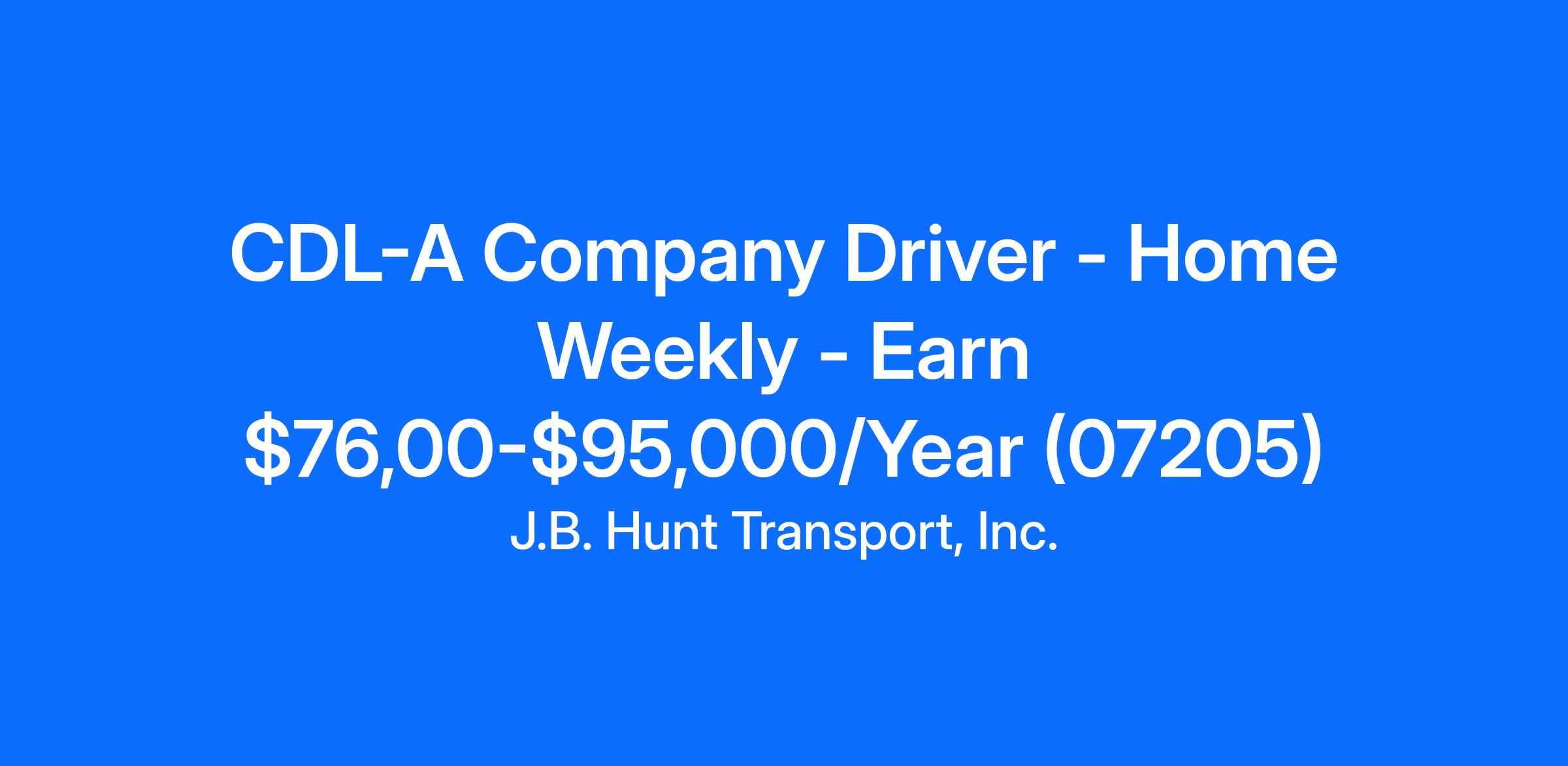 CDL-A Company Driver - Home Weekly - Earn $76,00-$95,000/Year (07205)