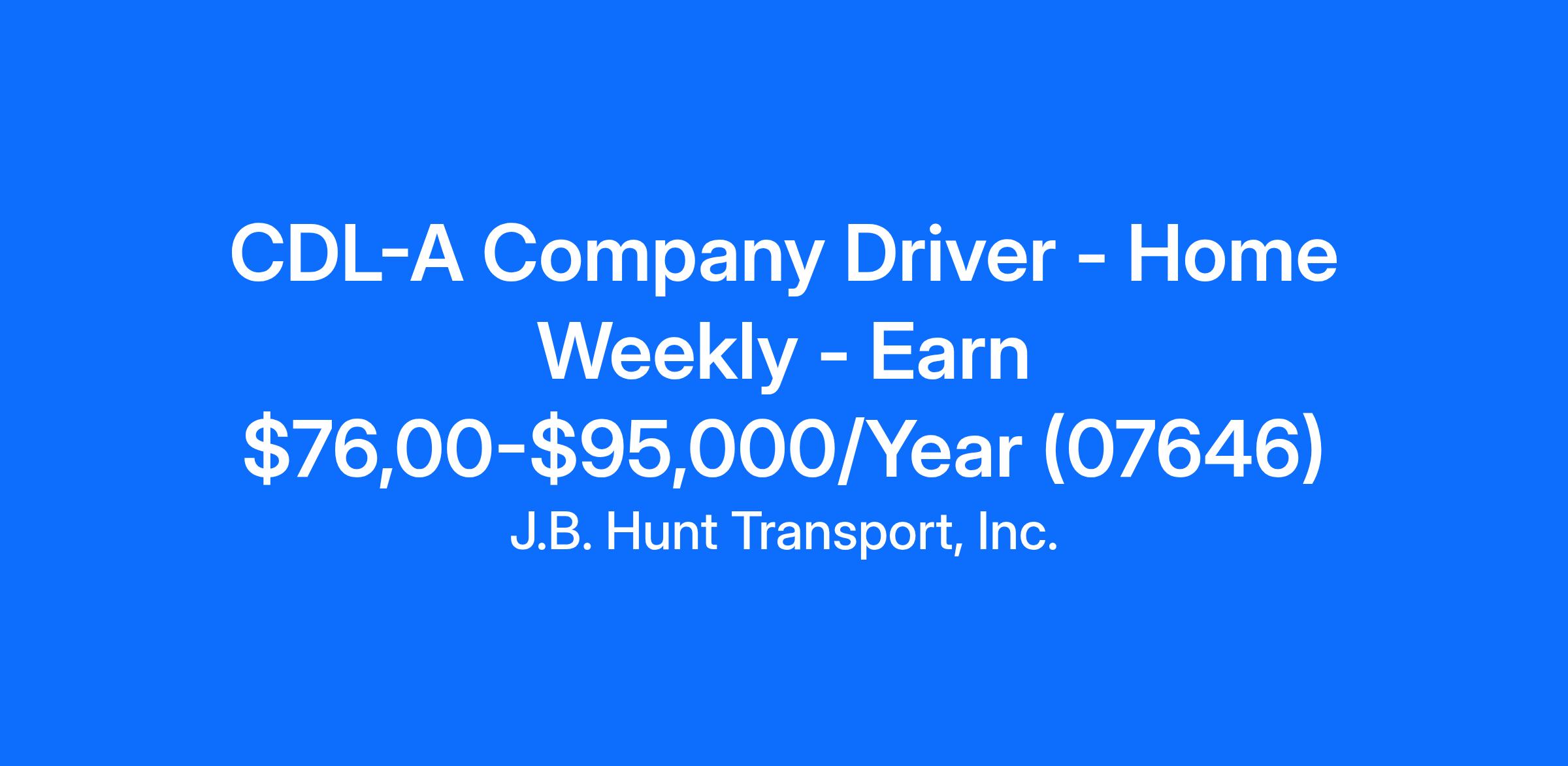 CDL-A Company Driver - Home Weekly - Earn $76,00-$95,000/Year (07646)