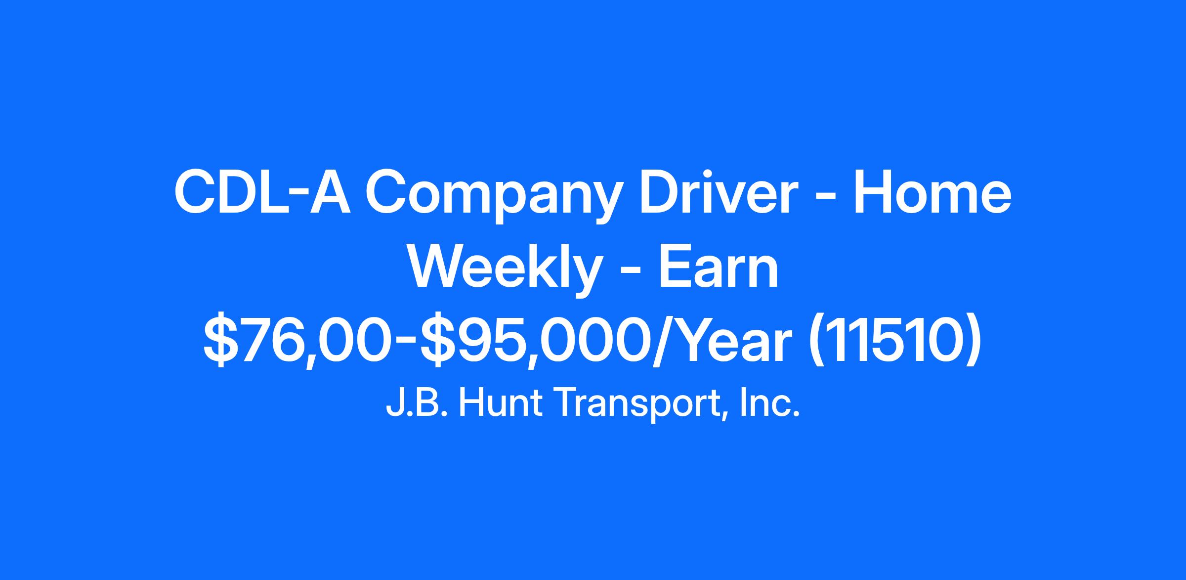 CDL-A Company Driver - Home Weekly - Earn $76,00-$95,000/Year (11510)