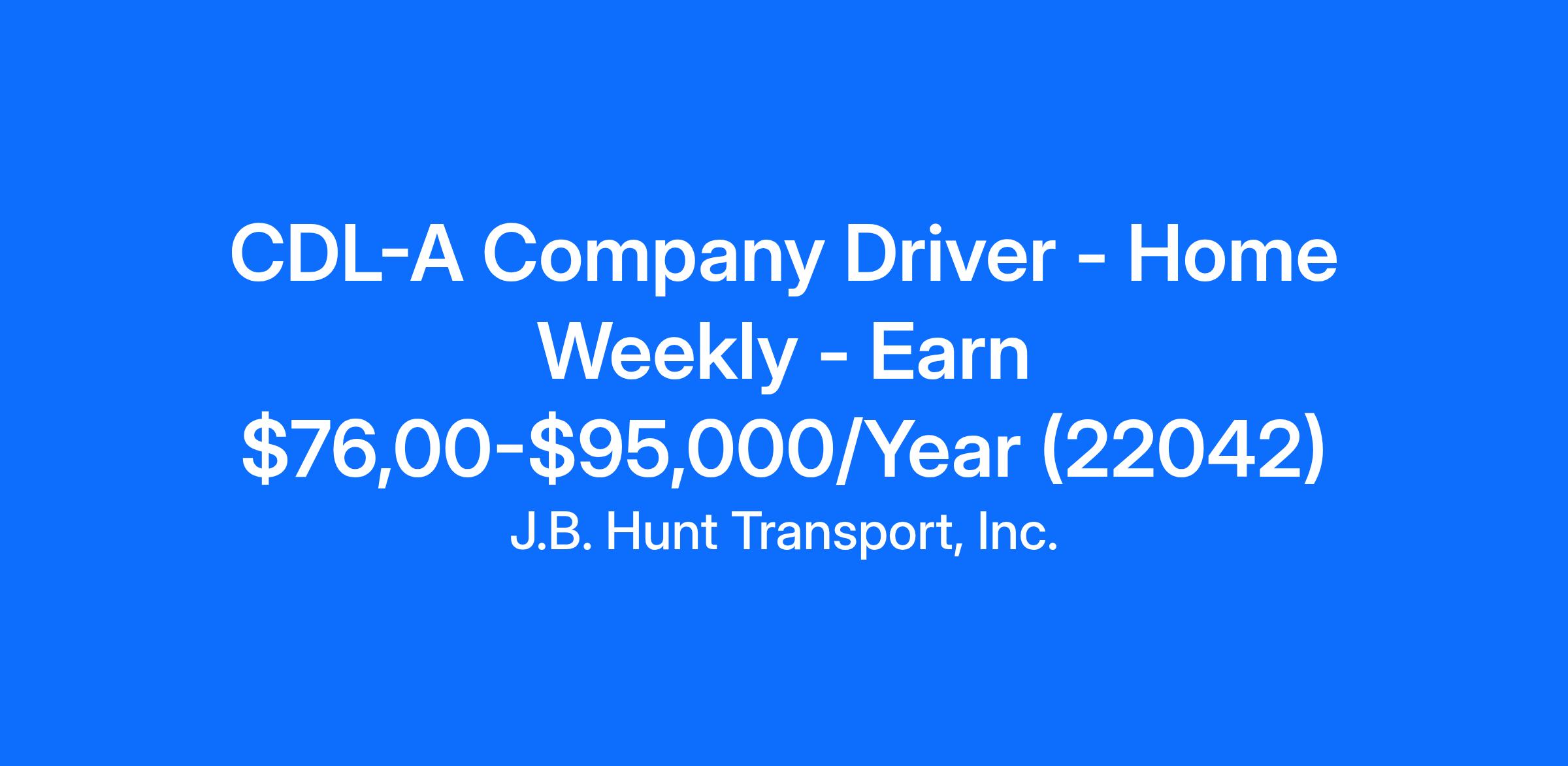 CDL-A Company Driver - Home Weekly - Earn $76,00-$95,000/Year (22042)