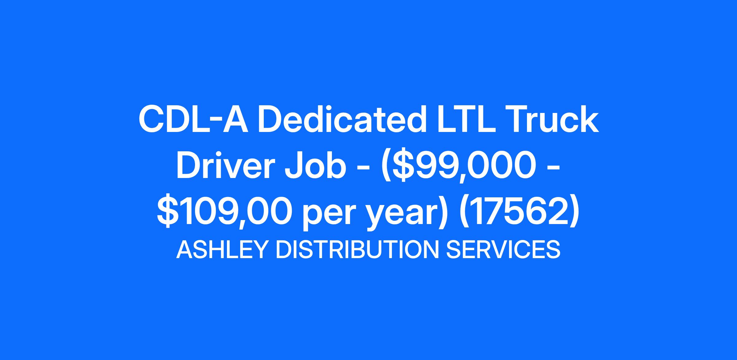 CDL-A LTL Dedicated Truck Driver Jobs Offer High Earning Power + Excellent Home Time!Why are so many CDL-A truck drivers making Ashley their long-term career home? Because as one of the largest family-owned fleets in the industry, we can offer outstanding CDL-A truck driving opportunities that fit your life!If you enjoy a challenge and take pride in exceeding customer expectations, we invite you to join us to combine your Class A truck driving skills with excellent customer service in delivering LTL loads for Ashley!Ashley offers you more than a job, we offer you a career.CDL-A LTL Dedicated Truck Driver Jobs at Ashley offer: