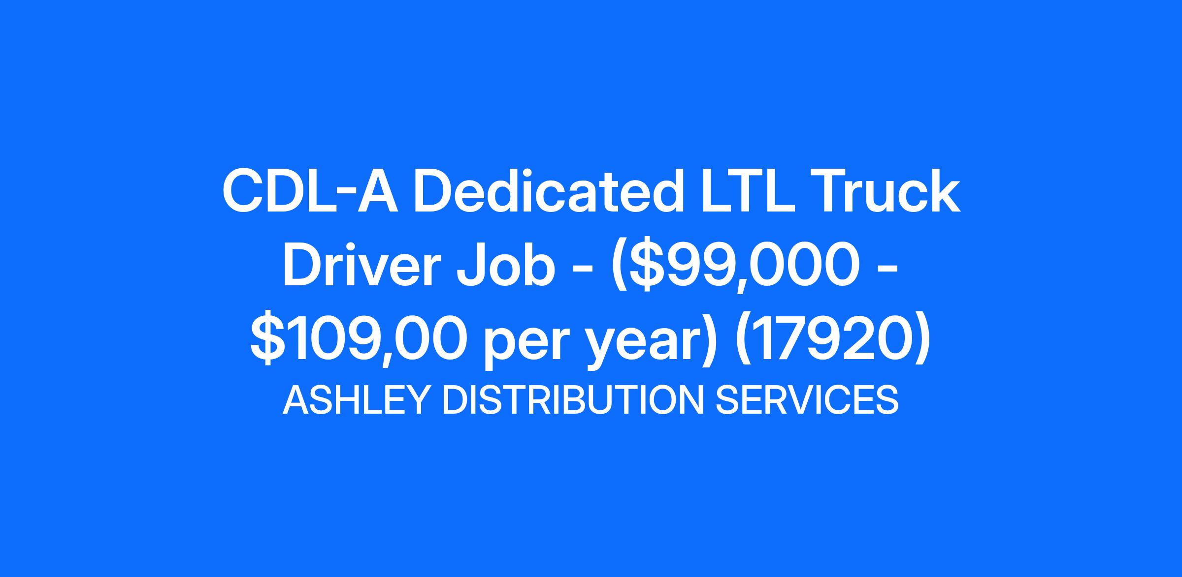 CDL-A Dedicated LTL Truck Driver Job - ($99,000 - $109,00 per year) (17920)