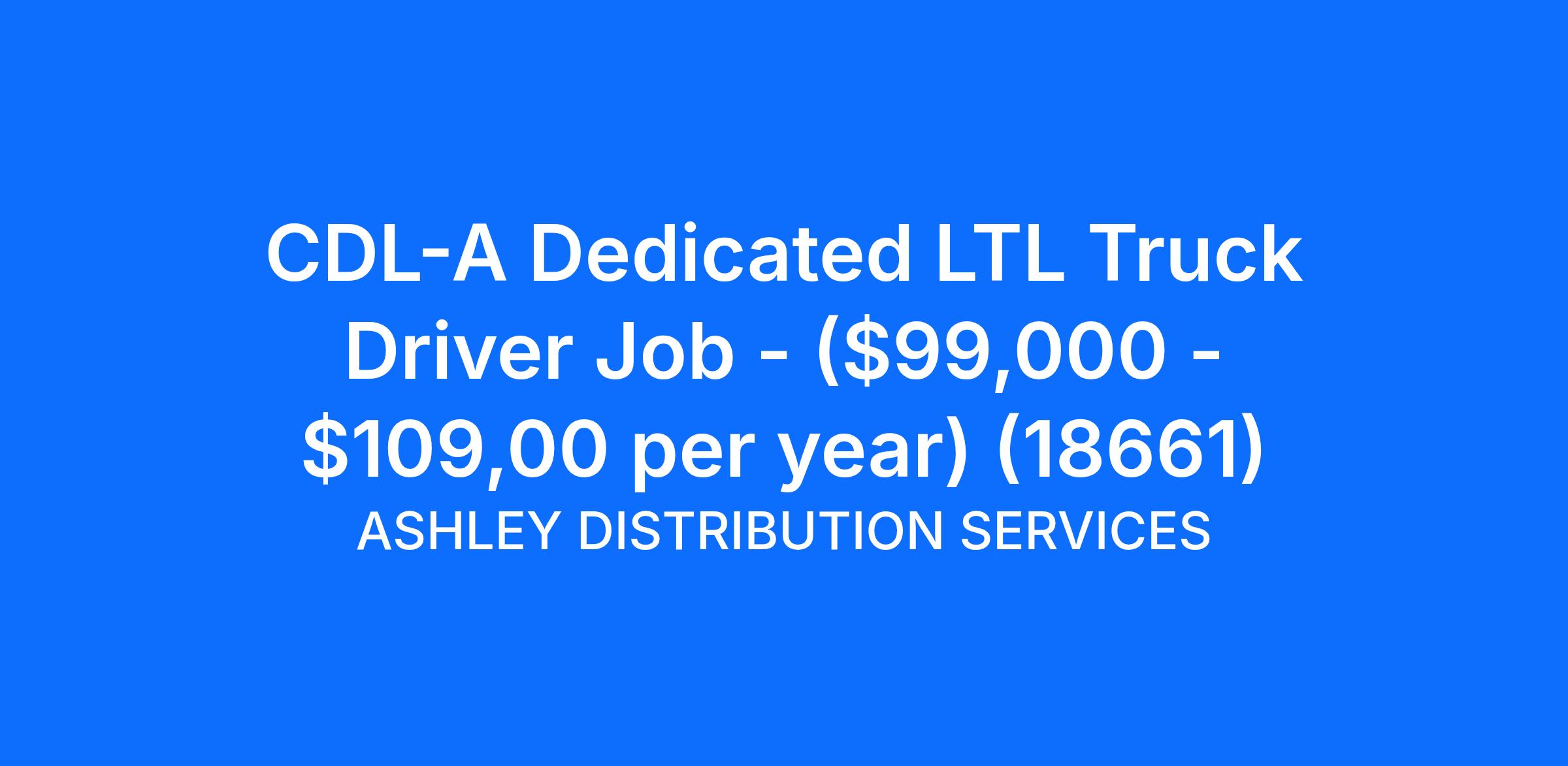 CDL-A Dedicated LTL Truck Driver Job - ($99,000 - $109,00 per year) (18661)