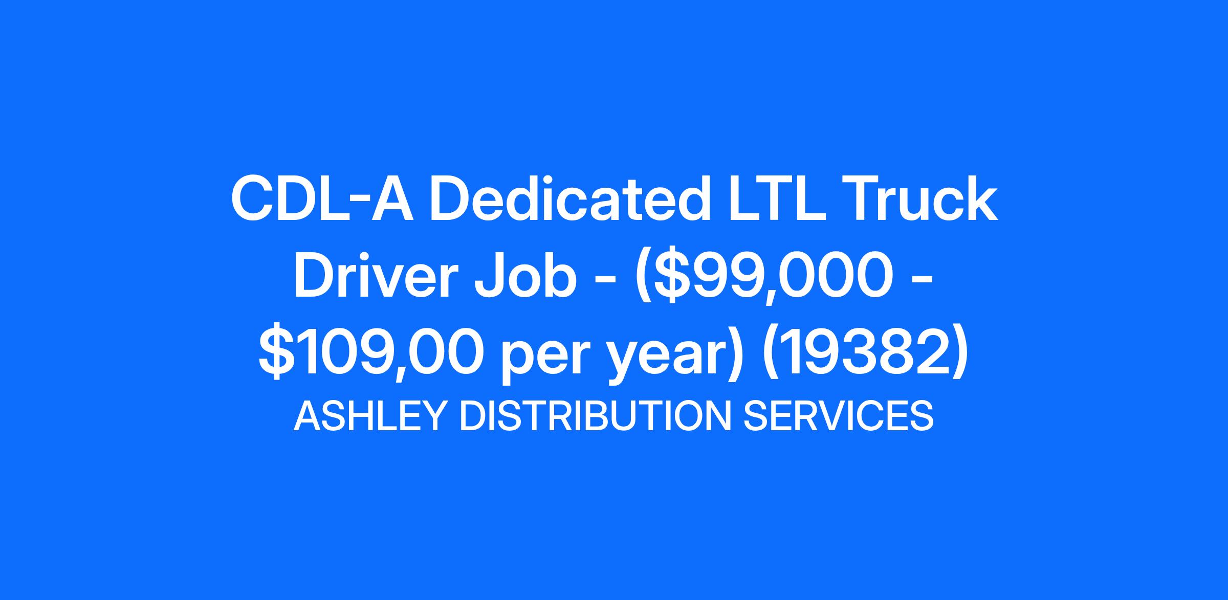 CDL-A LTL Dedicated Truck Driver Jobs Offer High Earning Power + Excellent Home Time!Why are so many CDL-A truck drivers making Ashley their long-term career home? Because as one of the largest family-owned fleets in the industry, we can offer outstanding CDL-A truck driving opportunities that fit your life!If you enjoy a challenge and take pride in exceeding customer expectations, we invite you to join us to combine your Class A truck driving skills with excellent customer service in delivering LTL loads for Ashley!Ashley offers you more than a job, we offer you a career.CDL-A LTL Dedicated Truck Driver Jobs at Ashley offer: