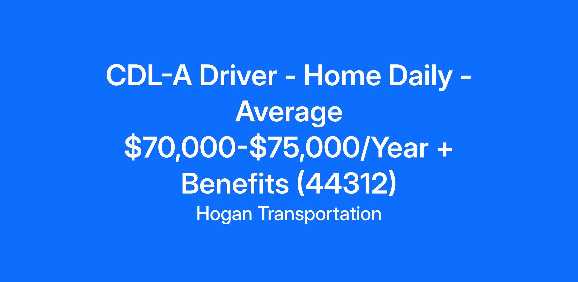 CDL-A Driver - Home Daily - Average $70,000-$75,000/Year + Benefits (44312)