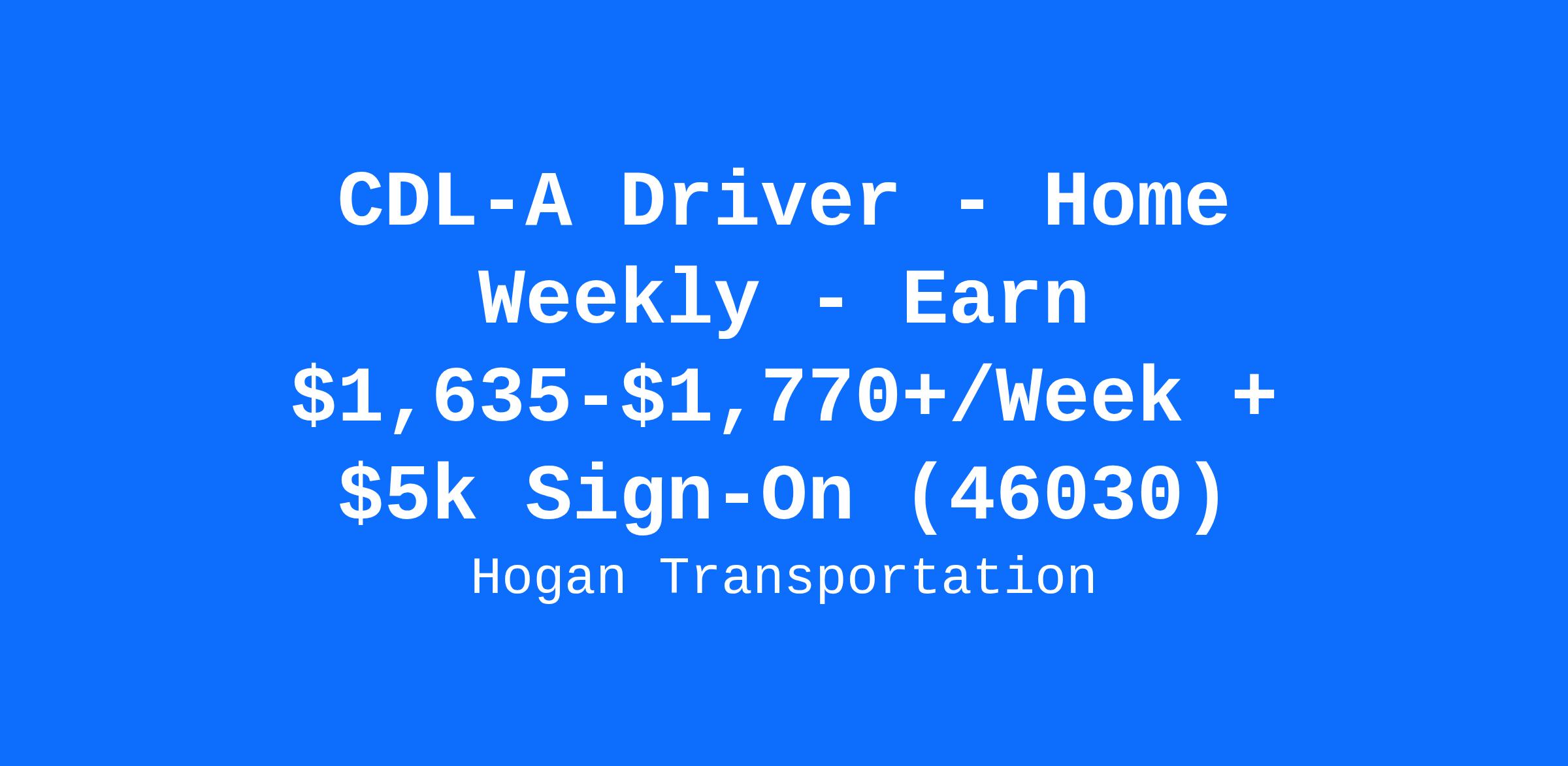 CDL-A Driver - Home Weekly - Earn $1,635-$1,770+/Week + $5k Sign-On (46030)