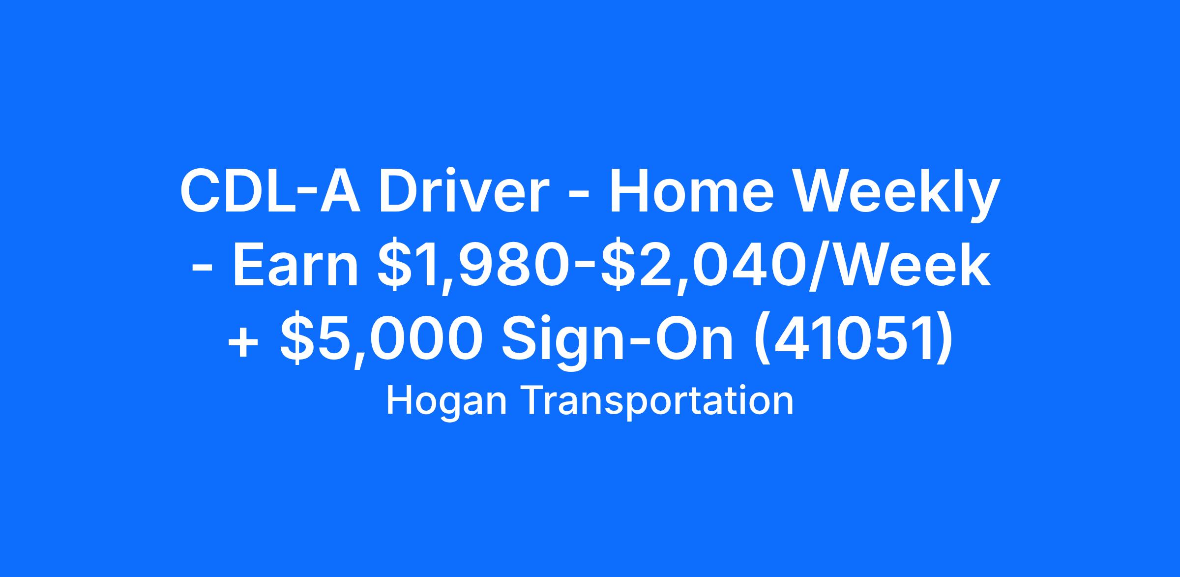CDL-A Driver - Home Weekly - Earn $1,980-$2,040/Week + $5,000 Sign-On (41051)