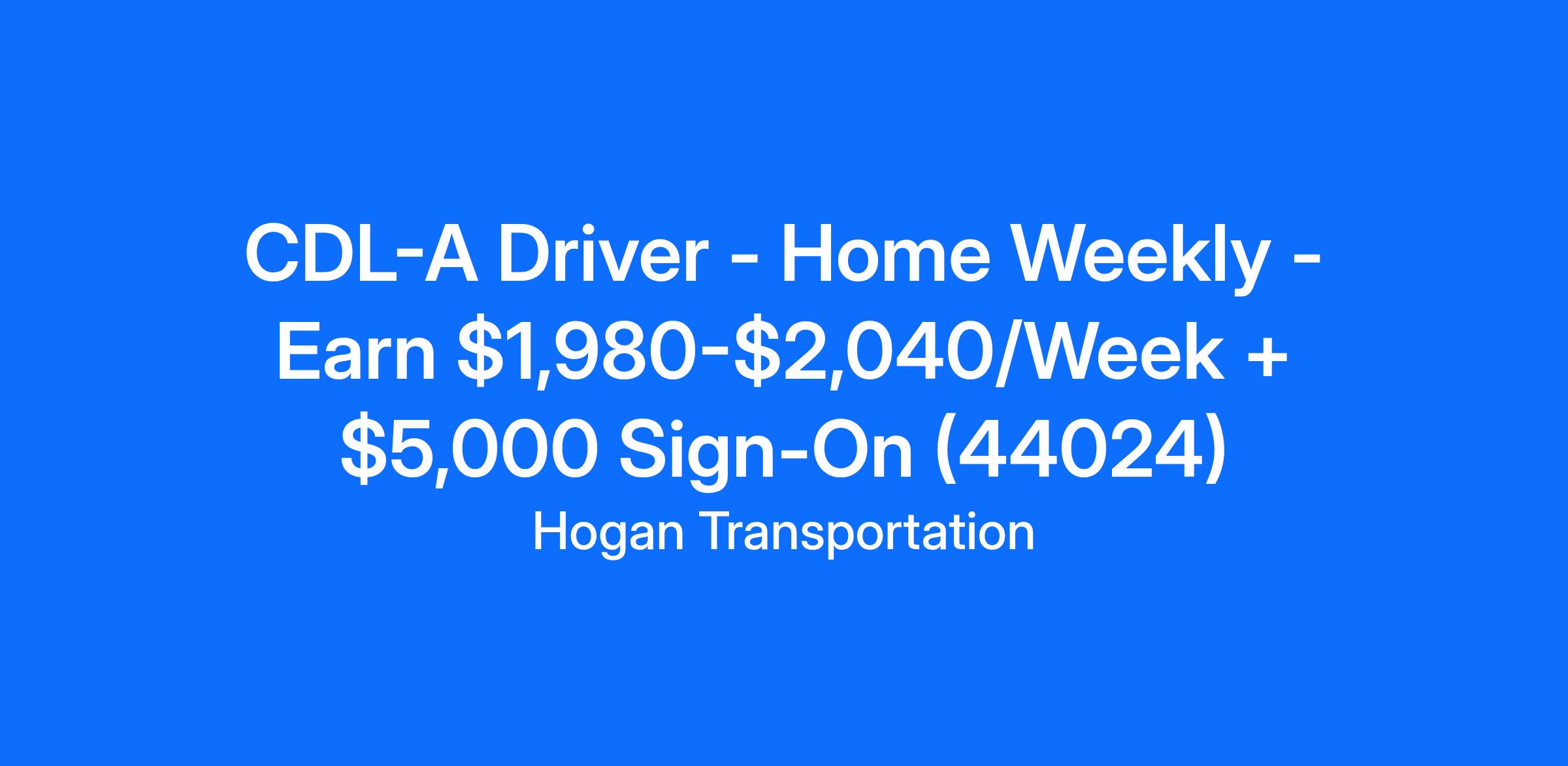 CDL-A Driver - Home Weekly - Earn $1,980-$2,040/Week + $5,000 Sign-On (44024)