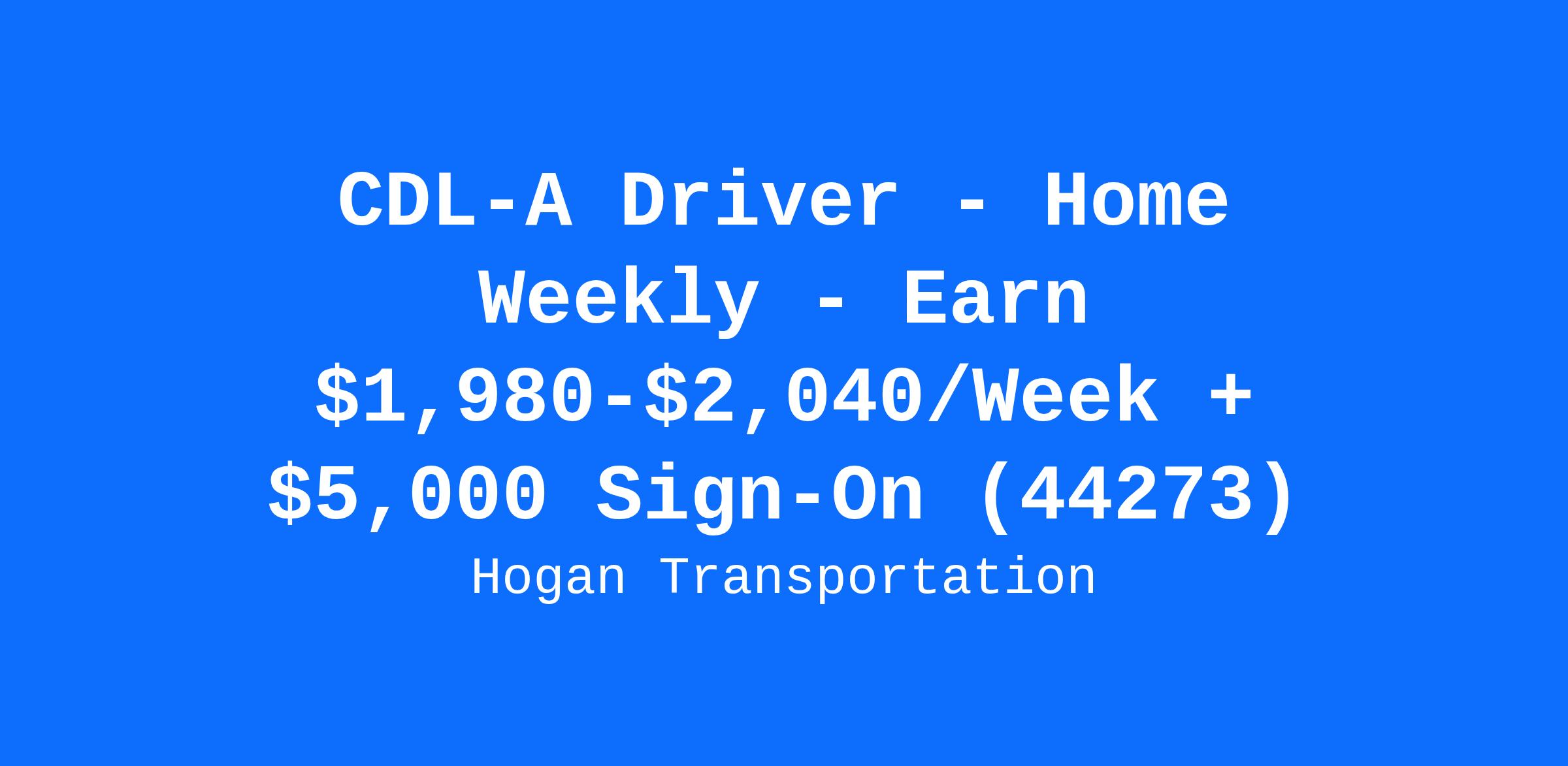 CDL-A Driver - Home Weekly - Earn $1,980-$2,040/Week + $5,000 Sign-On (44273)