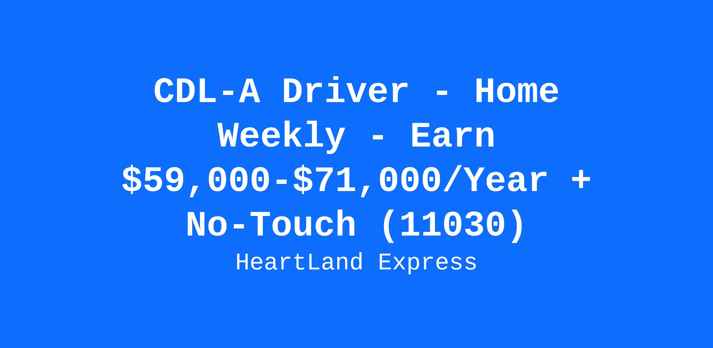CDL-A Driver - Home Weekly - Earn $59,000-$71,000/Year + No-Touch (11030)