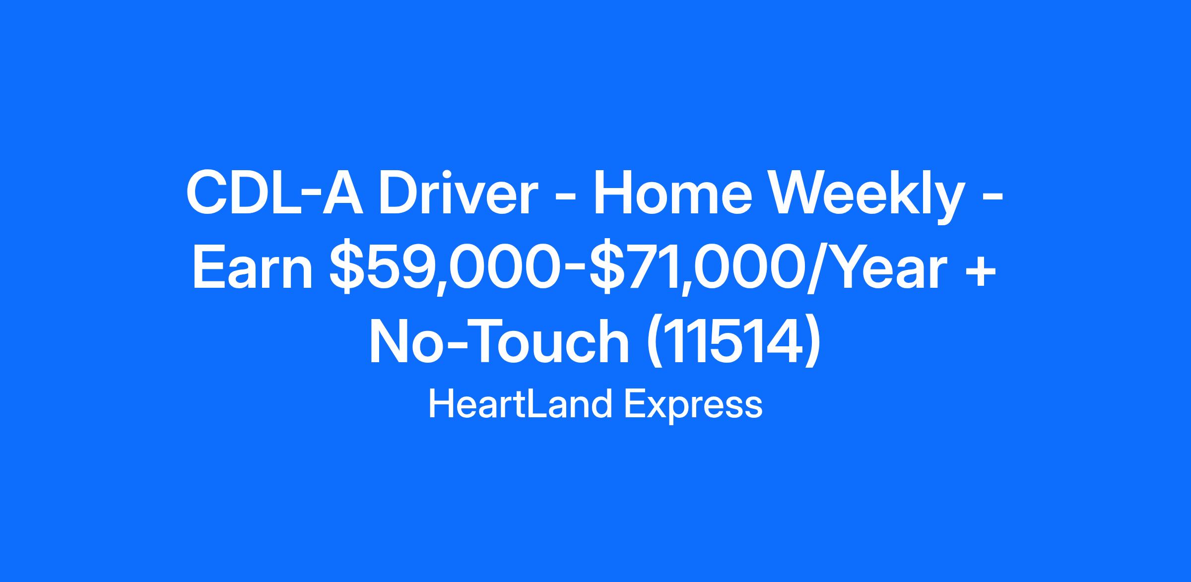 CDL-A Driver - Home Weekly - Earn $59,000-$71,000/Year + No-Touch (11514)