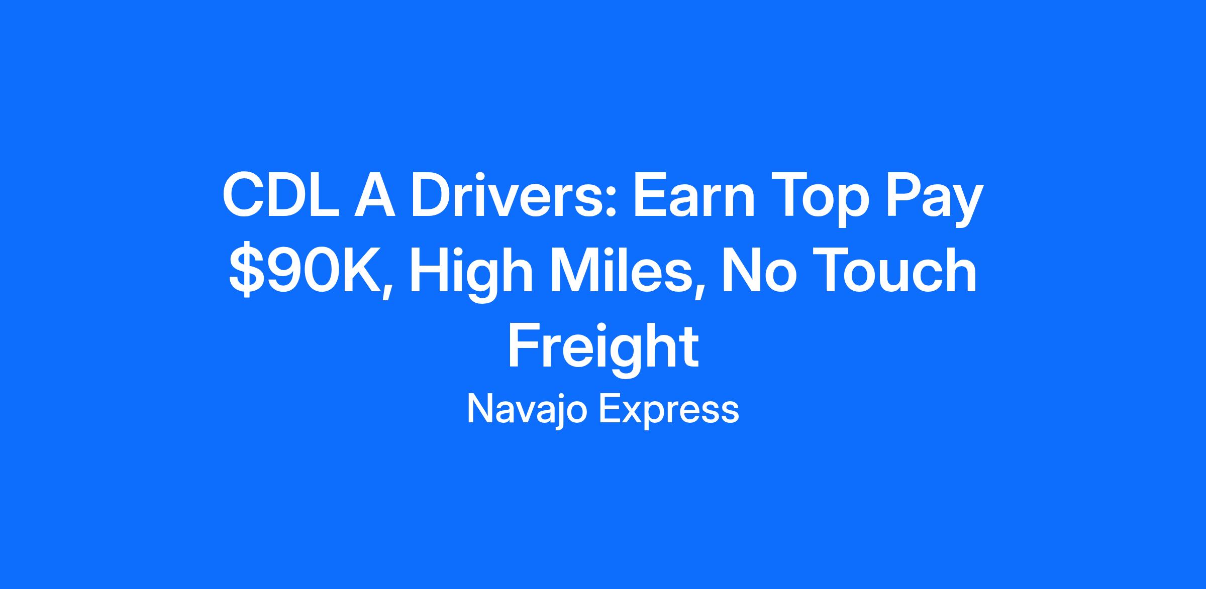 More Miles. More Money. More Opportunity. New Business & High-Mile Lanes Just Added — Find Your Lane at Navajo Express! Now Hiring OTR Drivers - No local or Florida positions available at this time Earn What Top Drivers Earn: