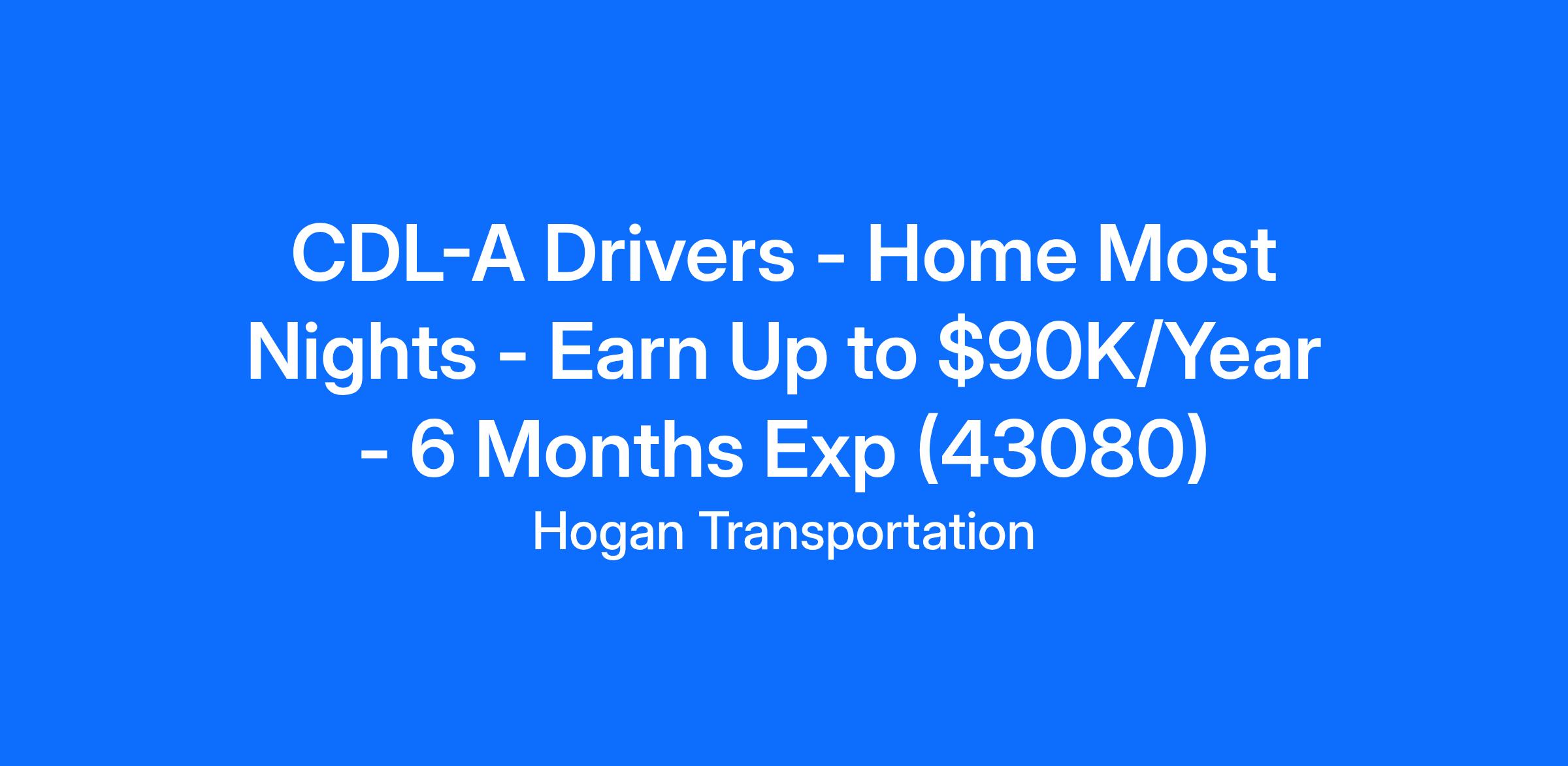 CDL-A Drivers - Home Most Nights - Earn Up to $90K/Year - 6 Months Exp (43080)