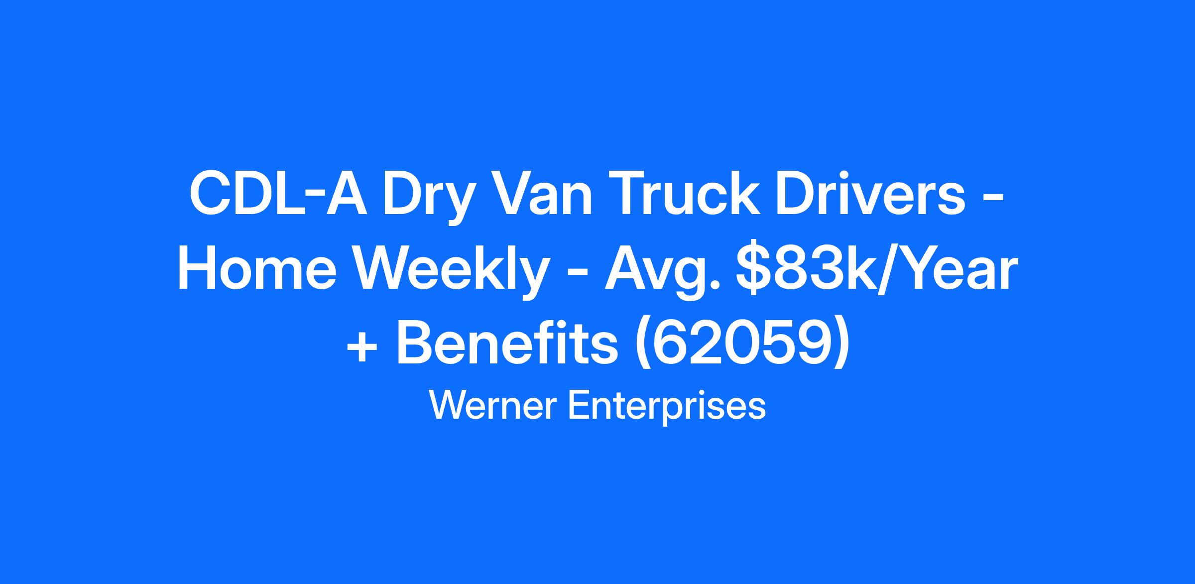 CDL-A Dry Van Truck Drivers - Home Weekly - Avg. $83k/Year + Benefits (62059)