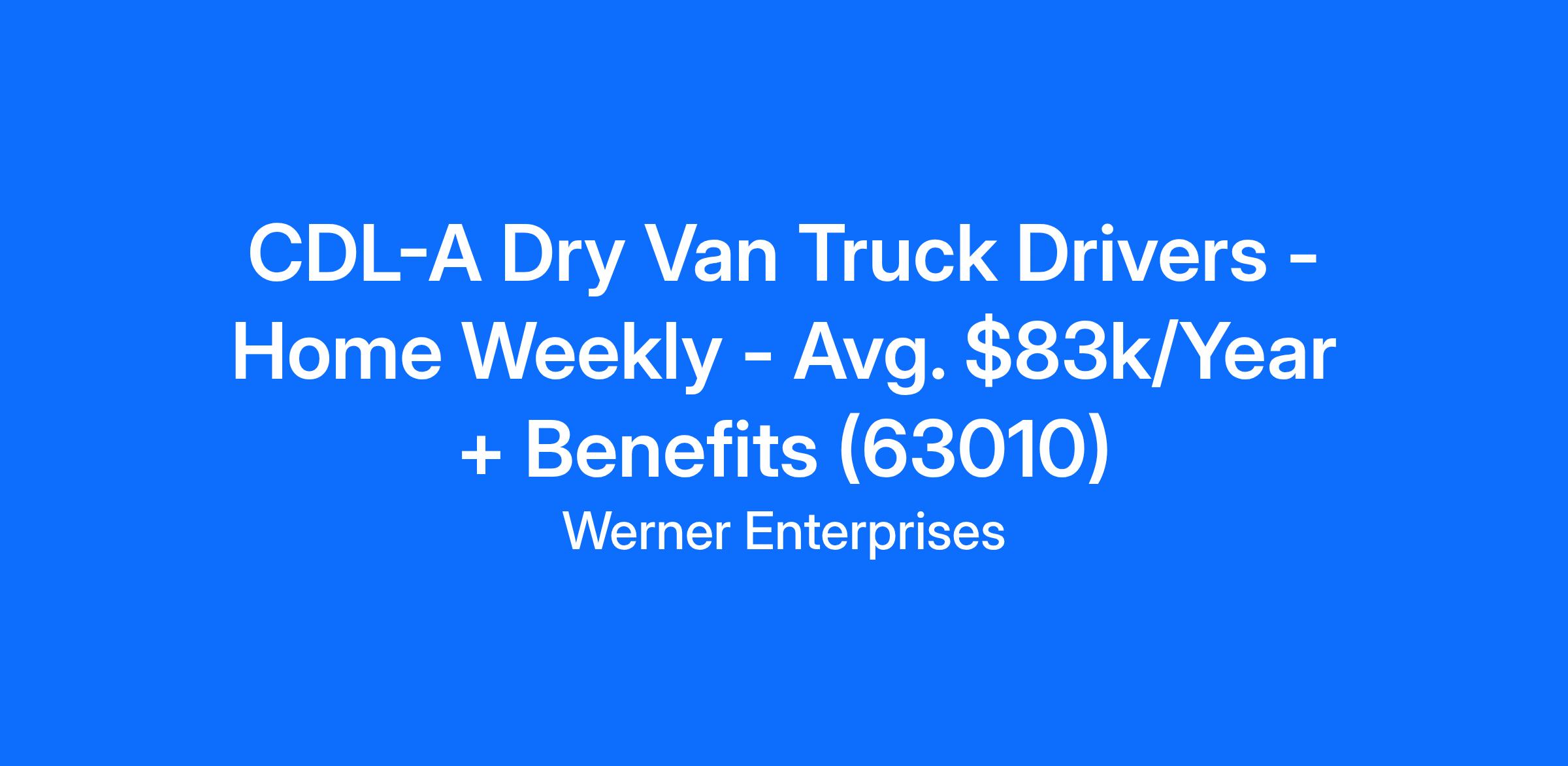 CDL-A Dry Van Truck Drivers - Home Weekly - Avg. $83k/Year + Benefits (63010)