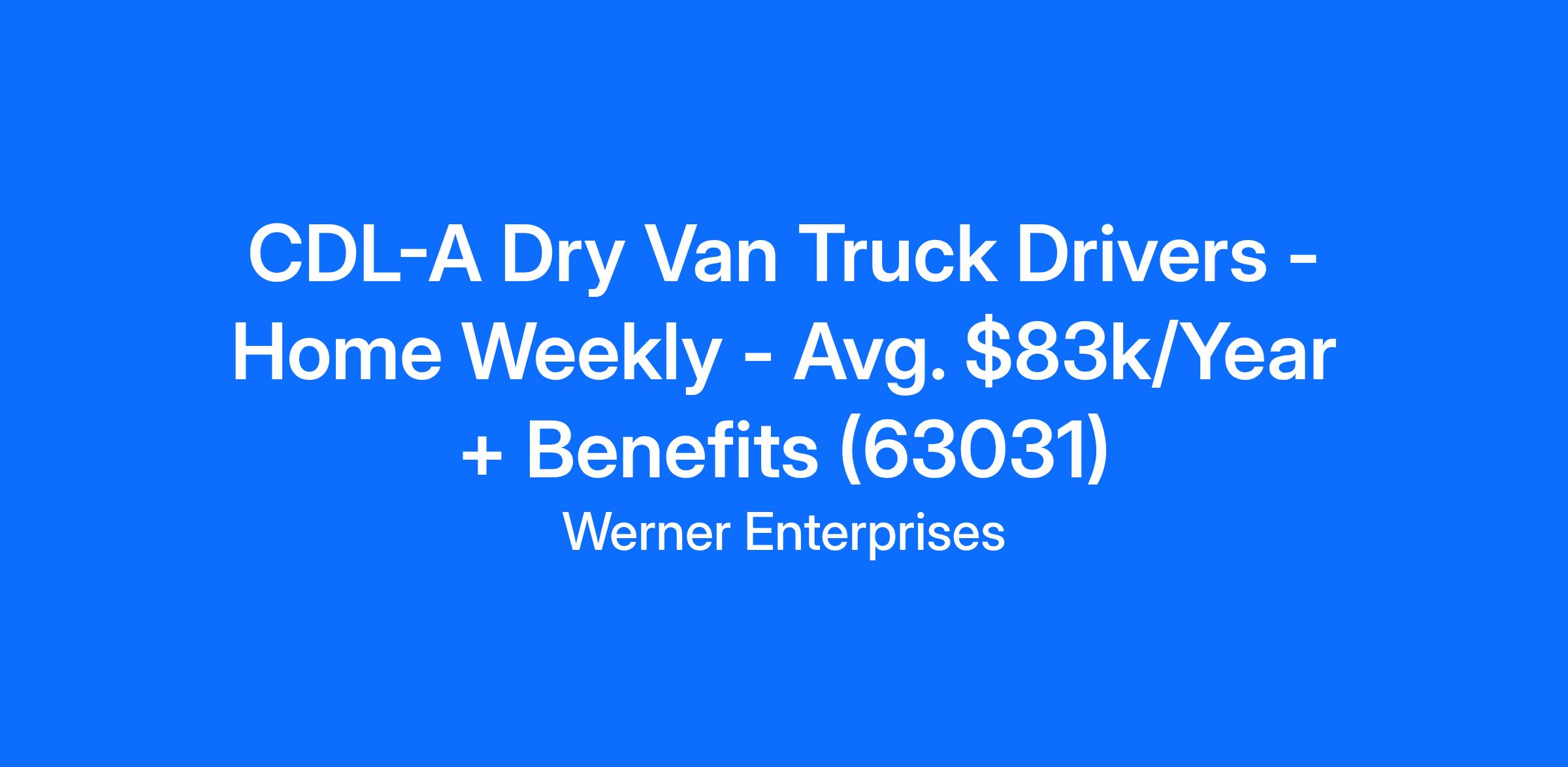 CDL-A Dry Van Truck Drivers - Home Weekly - Avg. $83k/Year + Benefits (63031)