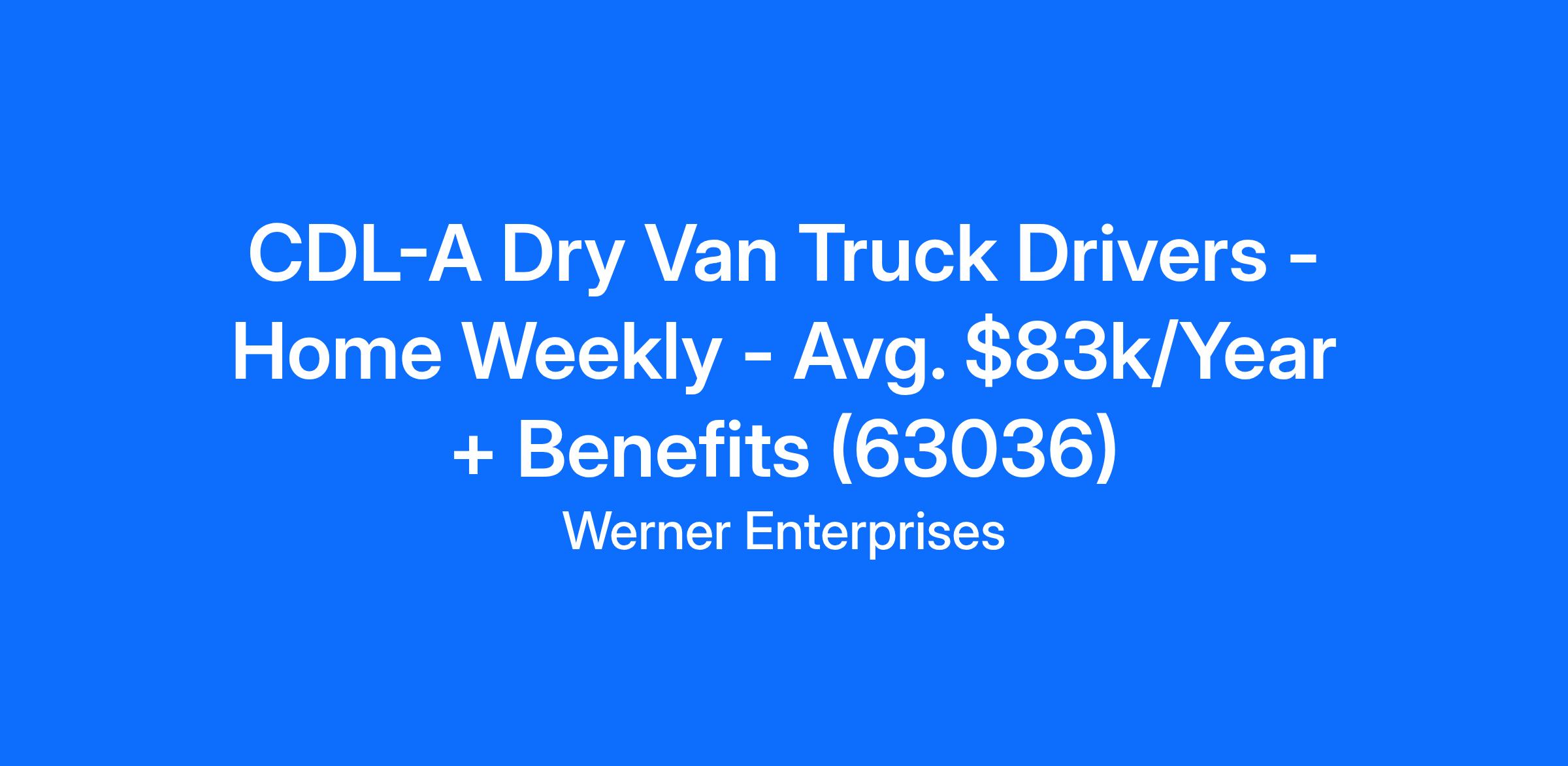 CDL-A Dry Van Truck Drivers - Home Weekly - Avg. $83k/Year + Benefits (63036)