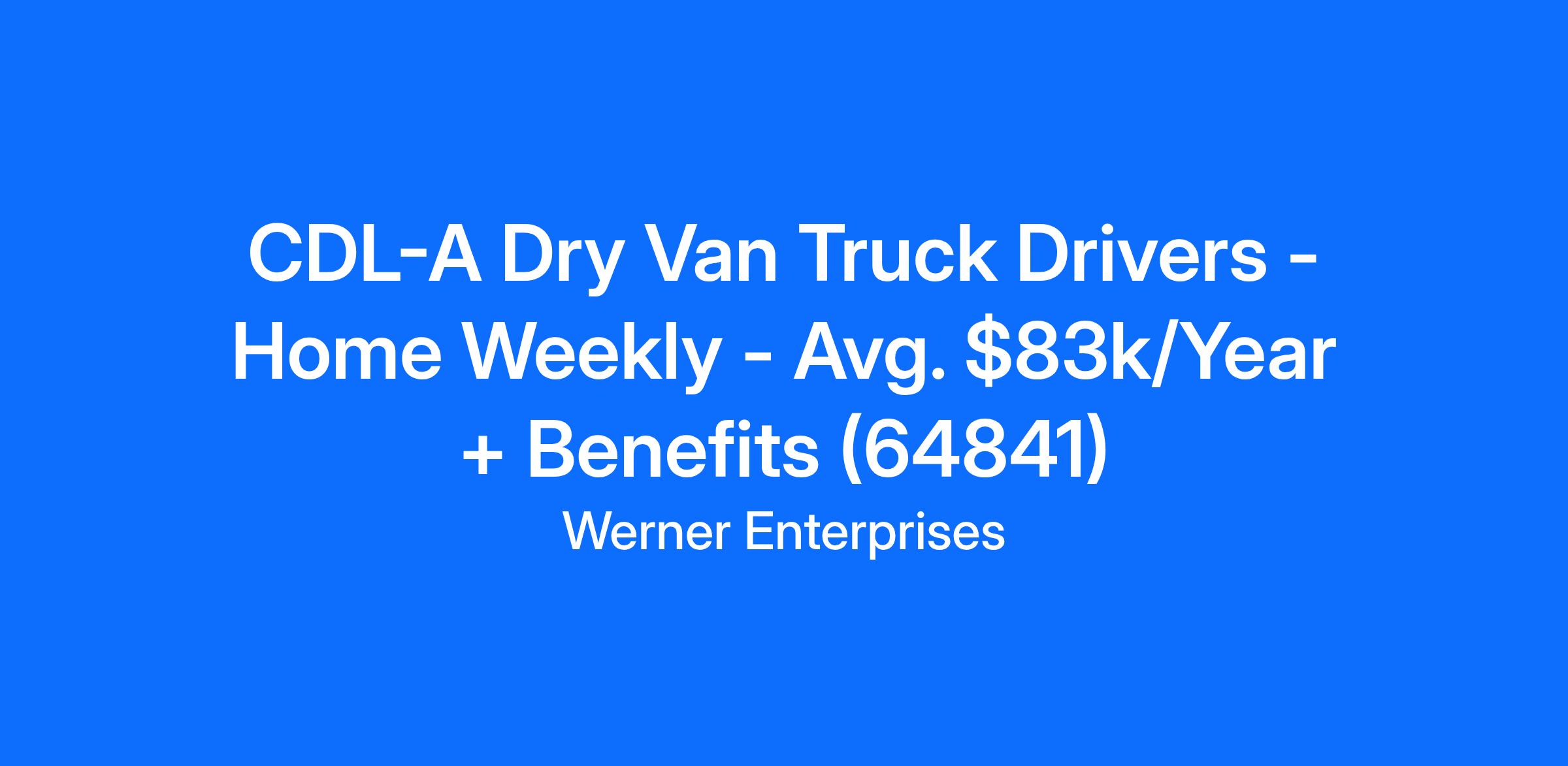 CDL-A Dry Van Truck Drivers - Home Weekly - Avg. $83k/Year + Benefits (64841)
