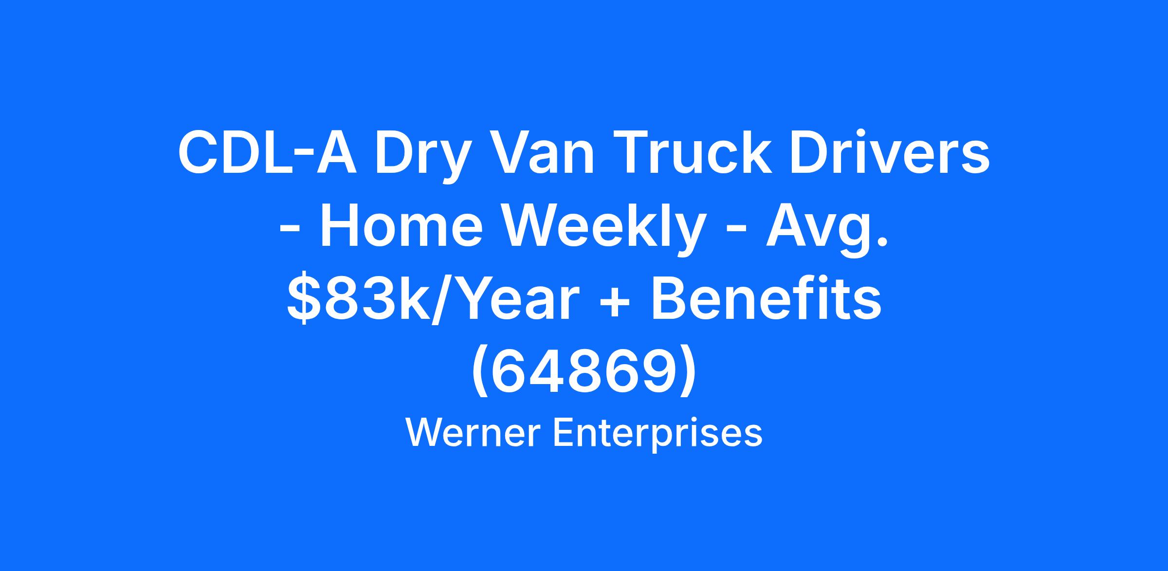 CDL-A Dry Van Truck Drivers - Home Weekly - Avg. $83k/Year + Benefits (64869)