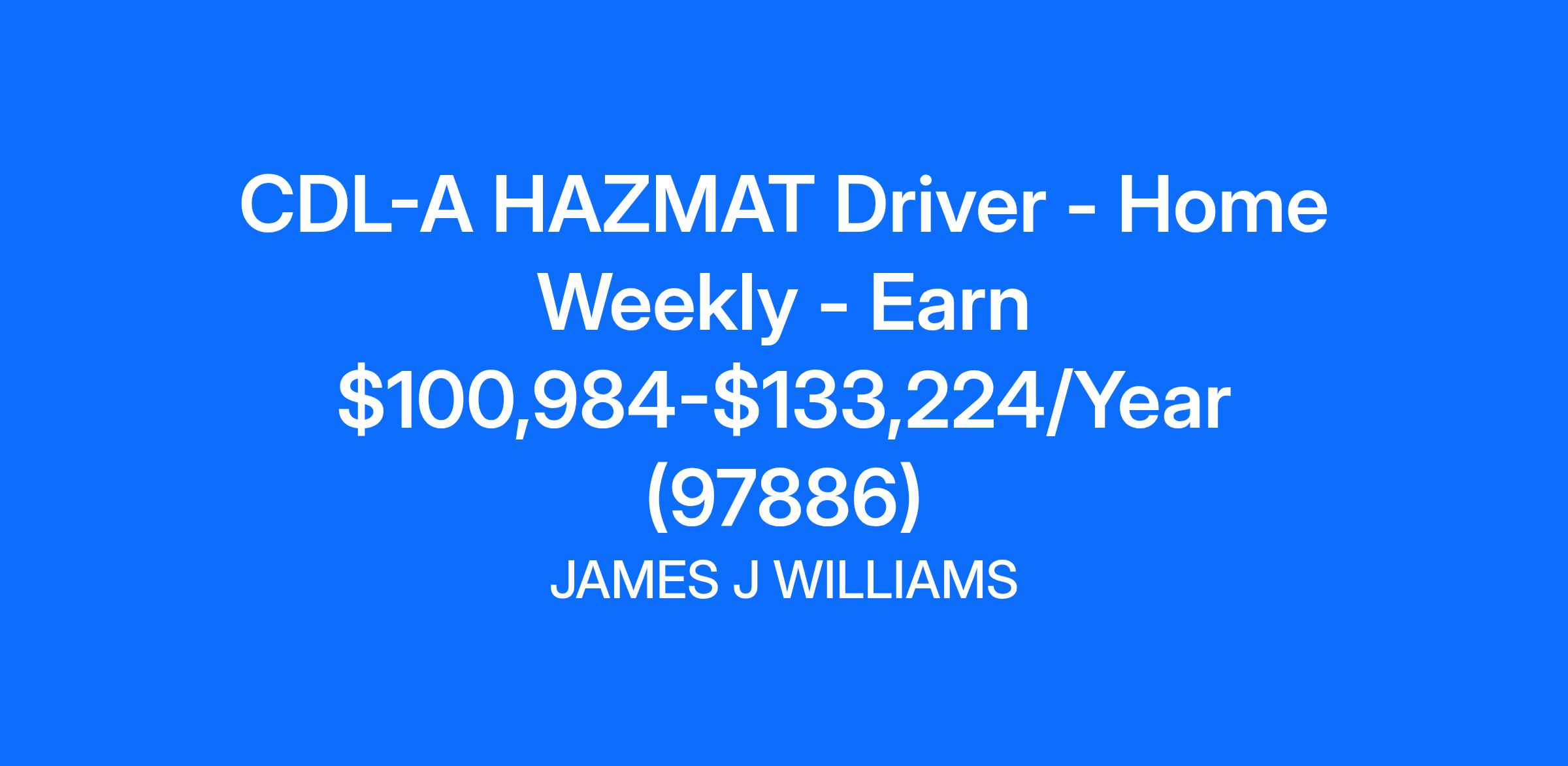 CDL-A HAZMAT Driver - Home Weekly - Earn $100,984-$133,224/Year (97886)