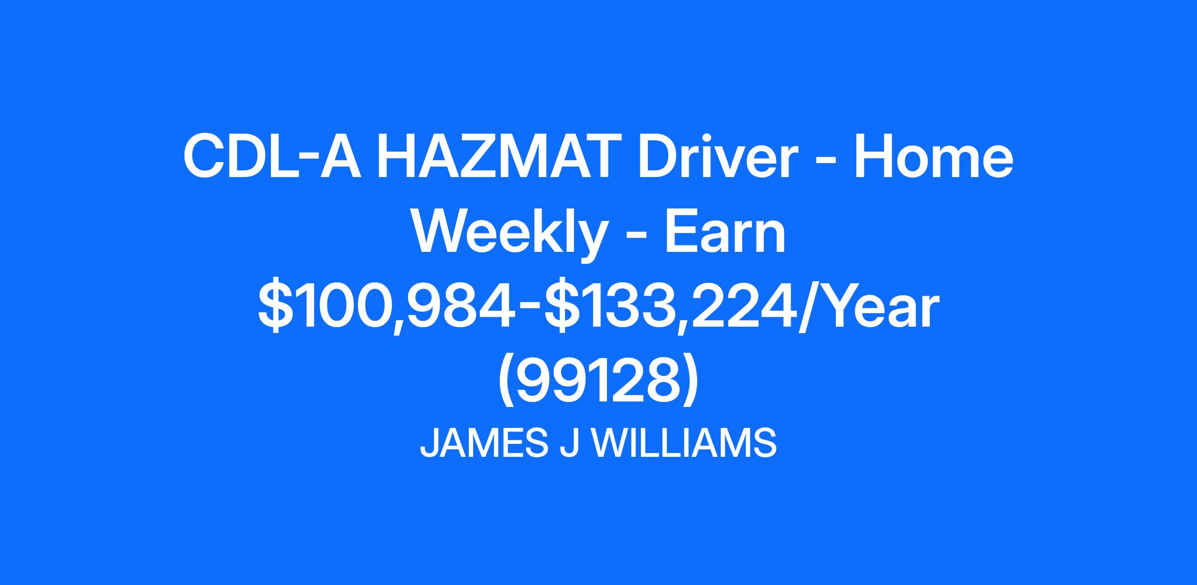 CDL-A HAZMAT Driver - Home Weekly - Earn $100,984-$133,224/Year (99128)