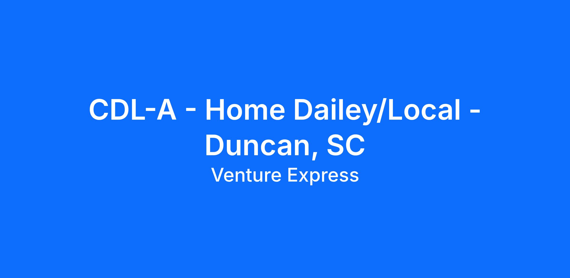 Pay Details:Starting at $25.00 per hour with a $0.50 increase every 6 months to $28.00 per hourHoliday Pay is $160 per day, eligible after 60 days of employment.$0.01 per mile Safety Bonus eligible, paid monthly. Safety Bonus is subject to successfully completing all Safety Bonus eligibility requirements.6th day may be required when requested by our customerThis position is exempt from overtime pay pursuant to Section 13(b)(1) of the Fair Labor Standards Act (FLSA)Operational DetailsDedicated customers with consistent routes supporting the automotive industryDrop and hook no touch freightSlip Seat PositionMultiple start times are available to fit your scheduleAdvanced technology for electronic logs and dispatchInward/Outward facing camerasNo Rider and No Pet Policy BenefitsWeekly direct deposit3 Blue Cross/Blue Shield of TN medical options to choose from starting as low as $30.00 per week for single coverage & $85.00 per week for familyIndividual and family medical plans available with multiple tiersHSA and FSA account optionsDental and vision plans with DeltaCompany paid life insurance of $25,000Two-day in class paid orientation, lunch provided. Third-day Ride-A-Long at home Terminal401K retirement planWork Life Matters Employee Assistance ProgramVoluntary enrollment options for disability, accident and critical care insurance policies availableCoverage for benefit plans are effective on the first of the month following 60 days of employmentAnniversary bonus of $1,200 paid after each year of serviceQualifications:Must have a valid Class A CDL Interstate drivers license.Must pass a DOT physical from one of our chosen FMCSA qualified clinics.Must pass a pre-employment drug screen.Must be able to operate a CMV on public roadways.Must be 23 years or older.No Felony convictions, pled "guilty" to or "No Contest" to crimes involving violence, dishonesty or drugs in the past 10 years.No failed DOT drug or alcohol tests. No Refusals. No Applicants from SAP Program.No DUI convictions, open container, or alcohol related incidents in previous 7 years.No Careless driving or reckless driving convictions on MVR or PSP in the previous 3 years.No at fault rear end collisions, rollover accidents, or jackknife accidents in the previous 3 years.12 months experience in the past 3 years pulling a 53 ft van if for van fleet of which 12 months.No more than a combination of 3 qualifications below: No more than 2 at fault accidents in the previous 3 years and No more than 2 moving violations in the previous 3 years.An acceptable PSP report; Combination of 4 or more violations, inspections, or warnings MUST be reviewed and approved by safety.No speeding convictions of 15 mph or more over the posted speed limit in the previous 3 years.Required to have 10 years of experience filled out; If there is a gap of 6 months or more of employment, then we must have a signed Employment of Declaration document.Verify 3 years of Class A CDL driving experience.Three or more jobs in the last 12 months goes to auditNo convictions for using a handheld device while driving subject to state and/or federal lawMust be able to pass a road test administered by Venture ExpressMust meet all qualifications in section 391.11 of the FMCSA regulations handbookPrimary residence must be within: (Home Daily/Local) a 50-mile commute from the Domicile assigned on hire date. (OTR/Regional) a 100-mile commute from the Domicile assigned on hire date. About Venture Express, Inc.Venture Express, Inc. wants a team of world-class Company Drivers like you, and that's exactly the way you deserve to be treated. Whether you live for the open highways or the city streets, adventuring for days, or coming home every night, Venture Express, Inc. has a career opportunity as a company truck driver suited perfectly for you. You will be recognized and rewarded for your accomplishments as a professional company truck driver while operating top-notch equipment. Are you ready to start your driving career with Venture Express Inc.? We invite you to FUEL your Class A CDL career with Venture Express, Inc. today. Venture Express, Inc. is an equal employment opportunity employer. As such, Venture Express, Inc. offers equal employment opportunities without regard to race, color, religion, sex (including pregnancy), national origin, age, disability, genetic information, veteran status, or any other status protected by law. These opportunities include all terms, conditions and privileges of employment, including but not limited to recruitment, selection, hiring, job placement, training, compensation, discipline, discharge, advancement and termination. Venture Express, Inc. does not give hiring preference to applicants based on the previously listed characteristics.