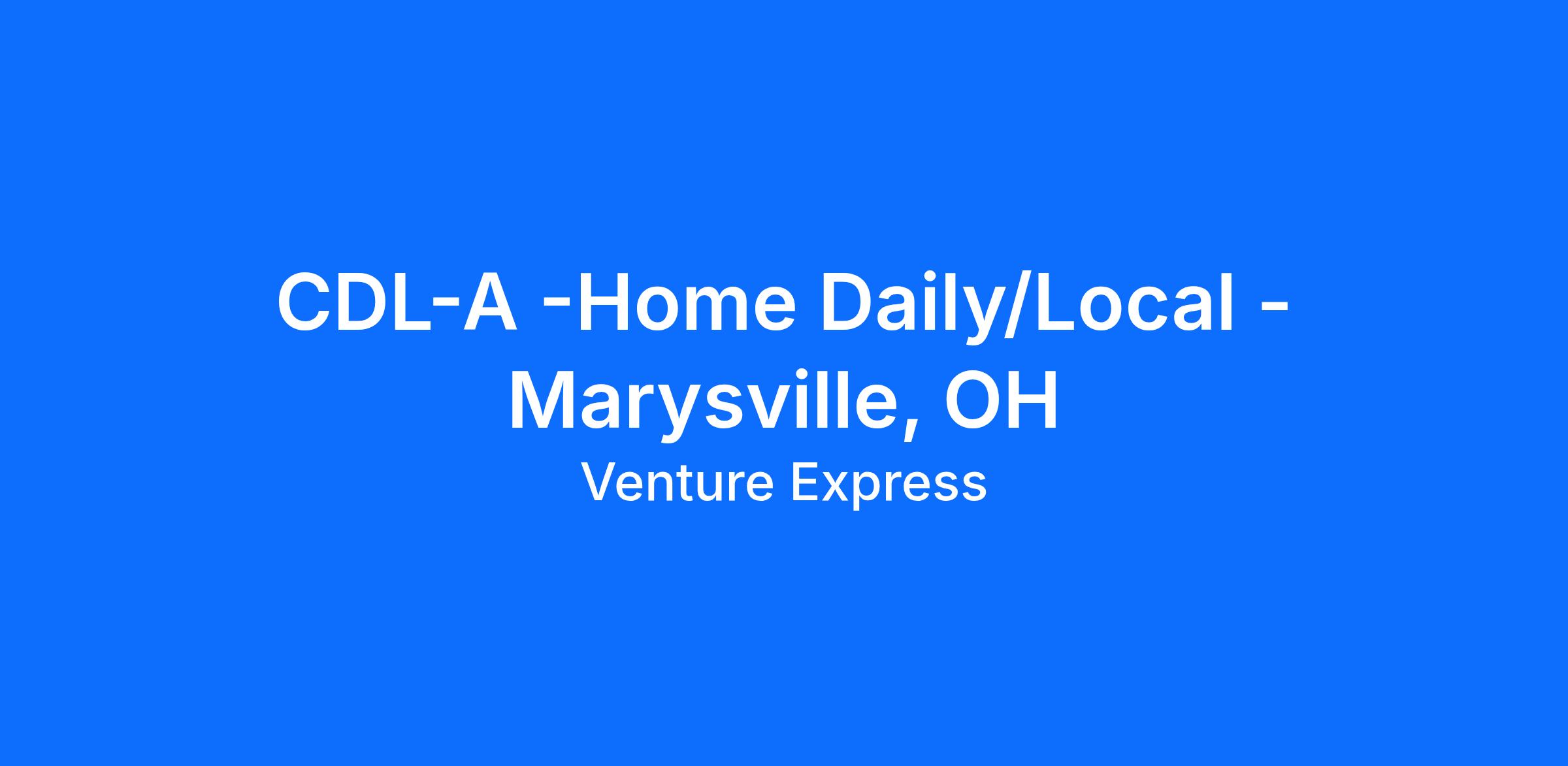 Marysville, OH - Local/Home Daily - 1st shift, No touch slipseat1st Shift - Starting at $25.00 per hour with a $0.50 increase every 6 months to $27.00 per hour.Daily movements within a 300 mile radius. Start times may vary within a 2-hour window in or out, depending on the customers week.Starting at $25.00 per hour with a $0.50 increase every 6 months to $27.00 per hourHoliday Pay is $160 per day, eligible after 60 days of employment.$0.01 per mile Safety Bonus eligible, paid monthly. Safety Bonus is subject to successfully completing all Safety Bonus eligibility requirements.6th day may be required when requested by our customerThis position is exempt from overtime pay pursuant to Section 13(b)(1) of the Fair Labor Standards Act (FLSA)Operational DetailsDedicated customers with consistent routes supporting the automotive industryDrop and hook no touch freightSlip Seat PositionMultiple start times are available to fit your scheduleAdvanced technology for electronic logs and dispatchInward/Outward facing camerasNo Rider and No Pet PolicyBenefits:Weekly direct deposit3 Blue Cross/Blue Shield of TN medical options to choose from starting as low as $30.00 per week for single coverage & $85.00 per week for familyIndividual and family medical plans available with multiple tiersHSA and FSA account optionsDental and vision plans with DeltaCompany paid life insurance of $25,000Two-day in class paid orientation, lunch provided. Third-day Ride-A-Long at home Terminal401K retirement planWork Life Matters Employee Assistance ProgramVoluntary enrollment options for disability, accident and critical care insurance policies availableCoverage for benefit plans are effective on the first of the month following 60 days of employment 12 months of CDL-A experience requiredMust have a valid Class A CDL Interstate drivers license.Must pass a DOT physical from one of our chosen FMCSA qualified clinics.Must pass a pre-employment drug screen.Must be able to operate a CMV on public roadways.Must be 23 years or older.No Felony convictions, pled "guilty" to or "No Contest" to crimes involving violence, dishonesty or drugs in the past 10 years.No failed DOT drug or alcohol tests. No Refusals. No Applicants from SAP Program.No DUI convictions, open container, or alcohol related incidents in previous 7 years.No Careless driving or reckless driving convictions on MVR or PSP in the previous 3 years.No at fault rear end collisions, rollover accidents, or jackknife accidents in the previous 3 years.12 months experience in the past 3 years pulling a 53 ft van if for van fleet of which 12 months.No more than a combination of 3 qualifications below: No more than 2 at fault accidents in the previous 3 years and No more than 2 moving violations in the previous 3 years.An acceptable PSP report; Combination of 4 or more violations, inspections, or warnings MUST be reviewed and approved by safety.No speeding convictions of 15 mph or more over the posted speed limit in the previous 3 years.Required to have 10 years of experience filled out; If there is a gap of 6 months or more of employment, then we must have a signed Employment of Declaration document.Verify 3 years of Class A CDL driving experience.Three or more jobs in the last 12 months goes to auditNo convictions for using a handheld device while driving subject to state and/or federal lawMust be able to pass a road test administered by Venture ExpressMust meet all qualifications in section 391.11 of the FMCSA regulations handbookPrimary residence must be within: (Home Daily/Local) a 50-mile commute from the Domicile assigned on hire date. (OTR/Regional) a 100-mile commute from the Domicile assigned on hire date. About Venture Express, Inc.Venture Express, Inc. wants a team of world-class Company Drivers like you, and that's exactly the way you deserve to be treated. Whether you live for the open highways or the city streets, adventuring for days, or coming home every night, Venture Express, Inc. has a career opportunity as a company truck driver suited perfectly for you. You will be recognized and rewarded for your accomplishments as a professional company truck driver while operating top-notch equipment. Are you ready to start your driving career with Venture Express Inc.? We invite you to FUEL your Class A CDL career with Venture Express, Inc. today. Venture Express, Inc. is an equal employment opportunity employer. As such, Venture Express, Inc. offers equal employment opportunities without regard to race, color, religion, sex (including pregnancy), national origin, age, disability, genetic information, veteran status, or any other status protected by law. These opportunities include all terms, conditions and privileges of employment, including but not limited to recruitment, selection, hiring, job placement, training, compensation, discipline, discharge, advancement and termination. Venture Express, Inc. does not give hiring preference to applicants based on the previously listed characteristics.