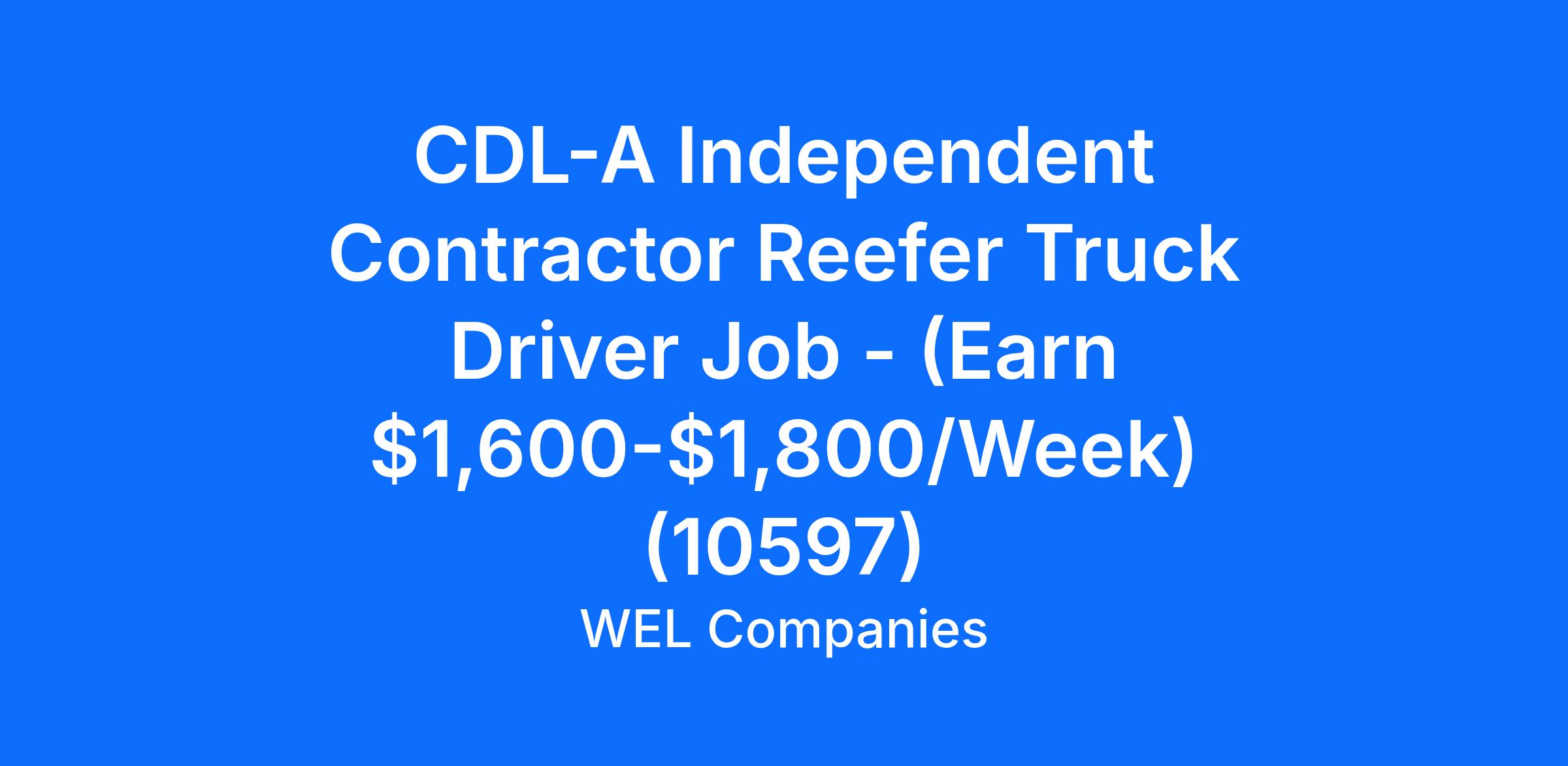 CDL-A Independent Contractor Reefer Truck Driver Job - (Earn $1,600-$1,800/Week) (10597)
