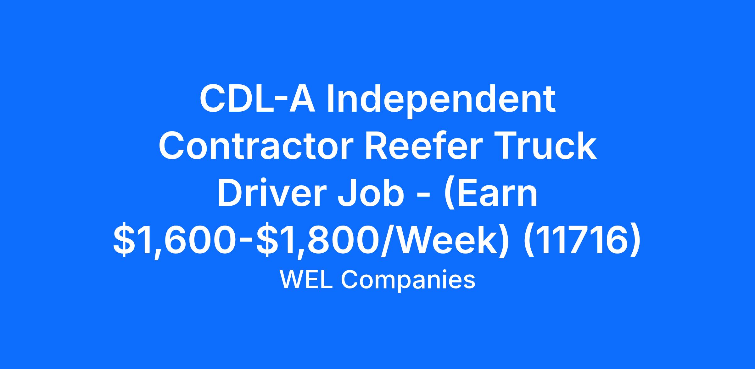 CDL-A Independent Contractor Reefer Truck Driver Job - (Earn $1,600-$1,800/Week) (11716)