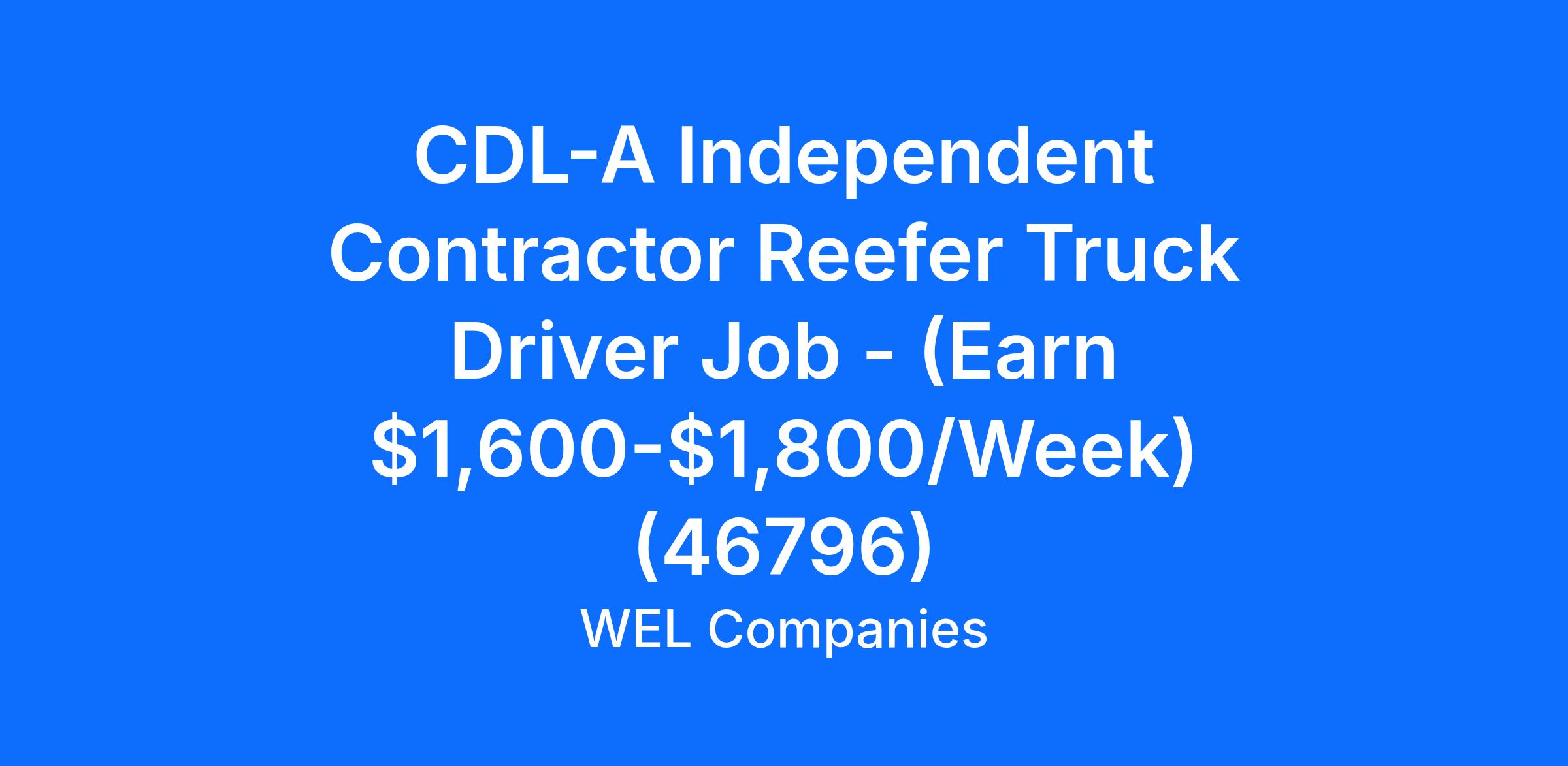CDL-A Independent Contractor Reefer Truck Driver Job - (Earn $1,600-$1,800/Week) (46796)