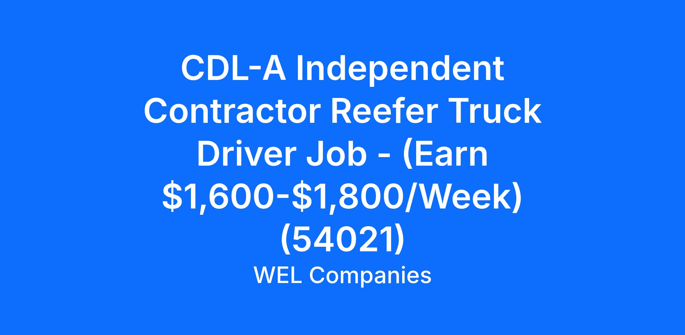 CDL-A Independent Contractor Reefer Truck Driver Job - (Earn $1,600-$1,800/Week) (54021)